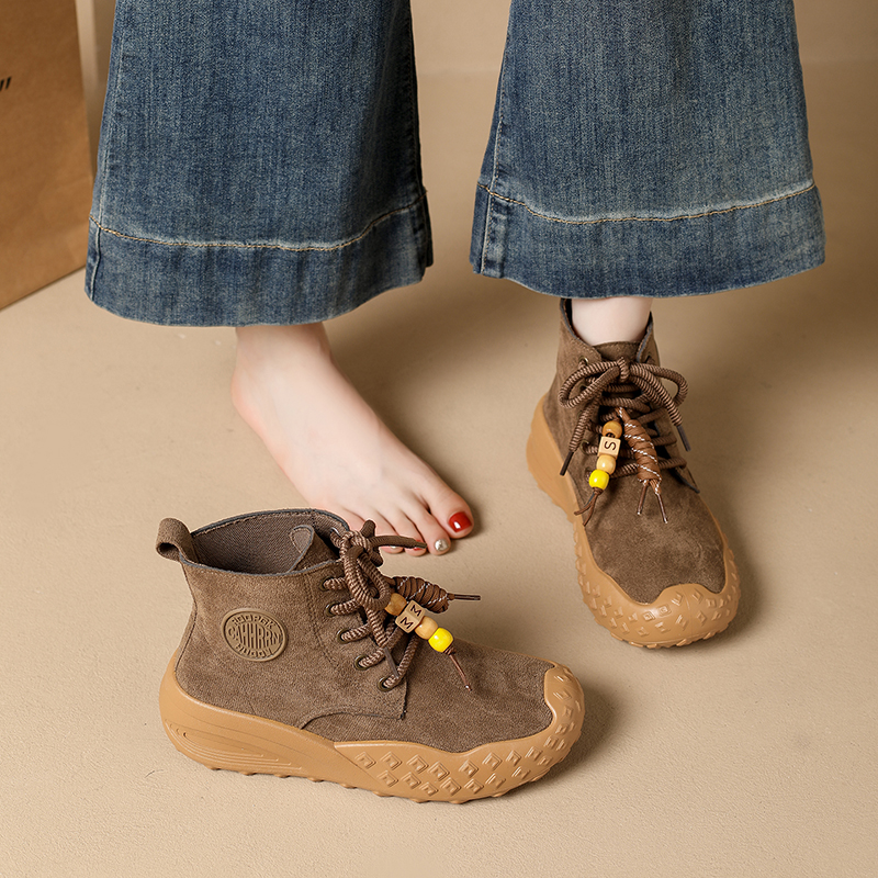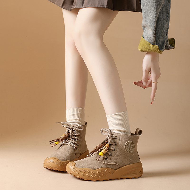 2025新款厚底高帮马丁靴女秋季单靴英伦风系带短靴增高工装靴34码