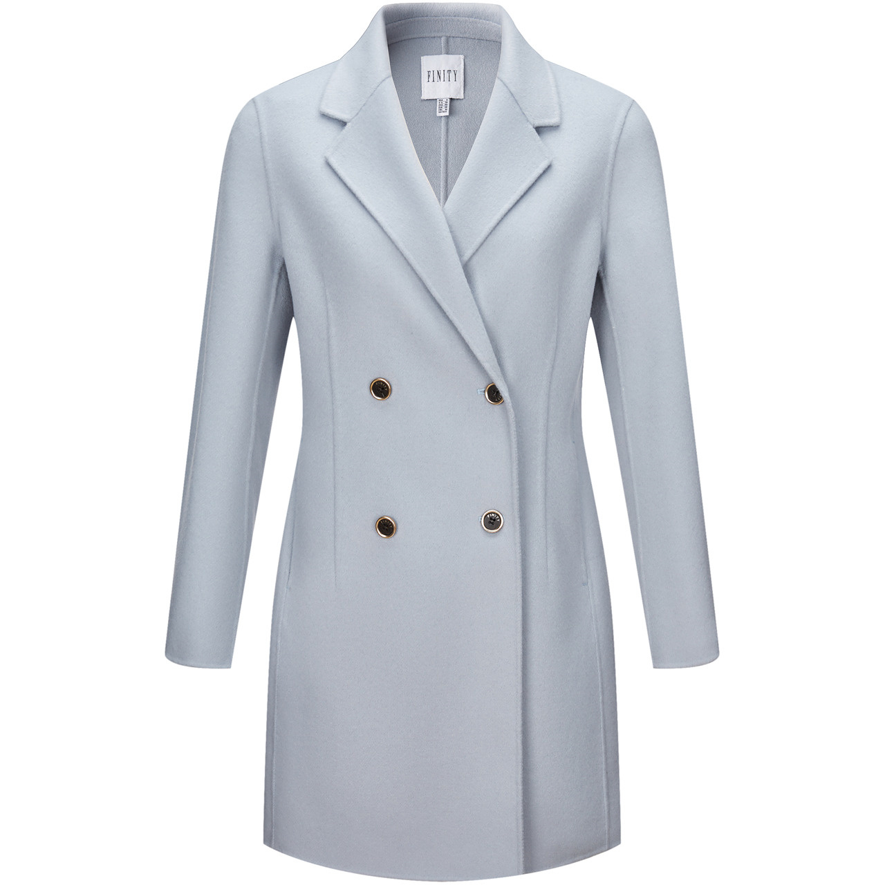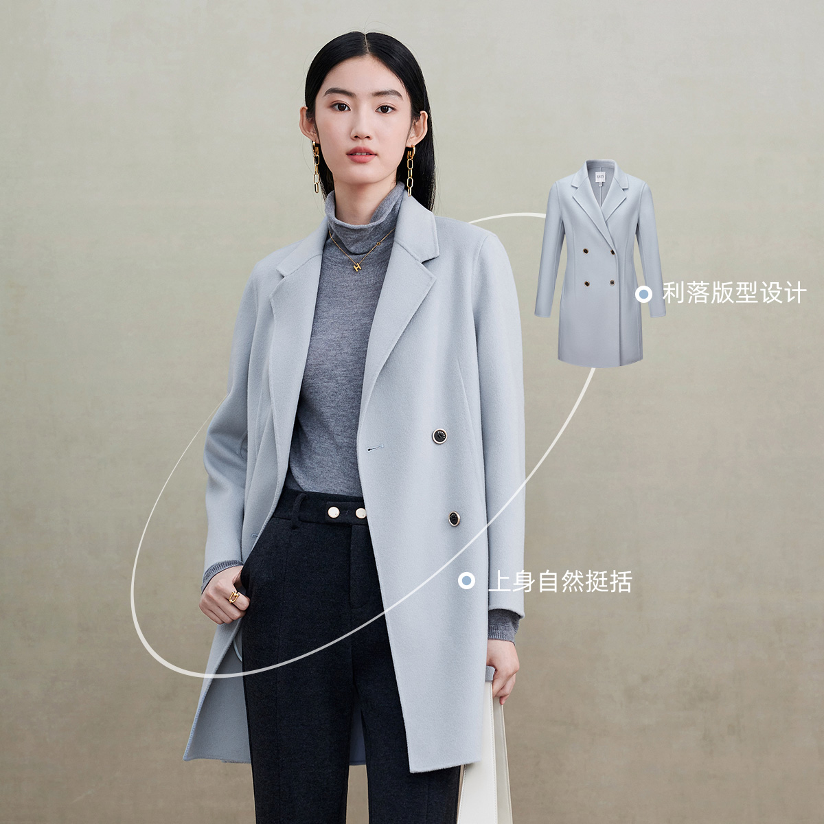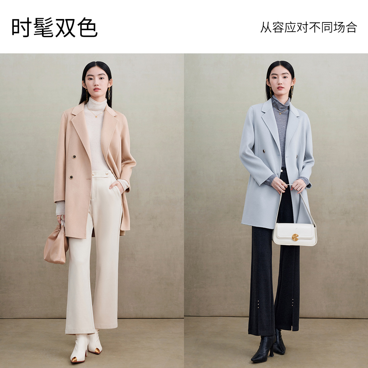 菲妮迪品牌长款毛呢外套秋季新款简约气质西装领时尚羊绒大衣