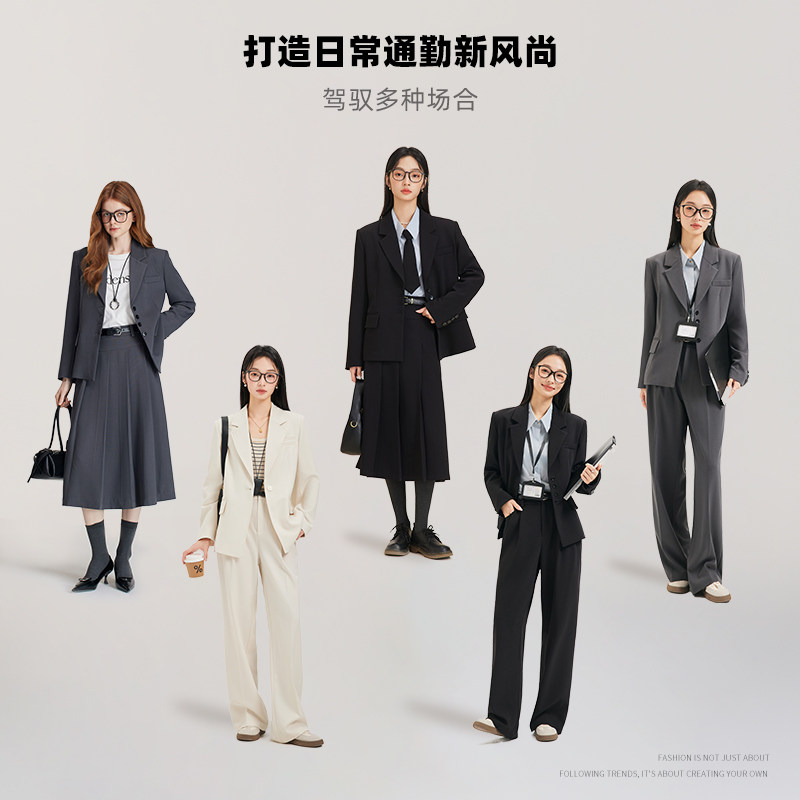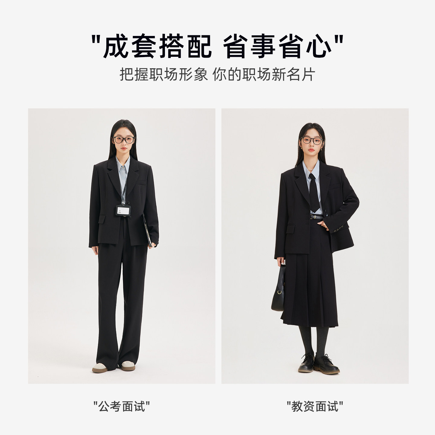 movk黑色西装外套女士小个子大学生职业面试正装高级休闲西服套装