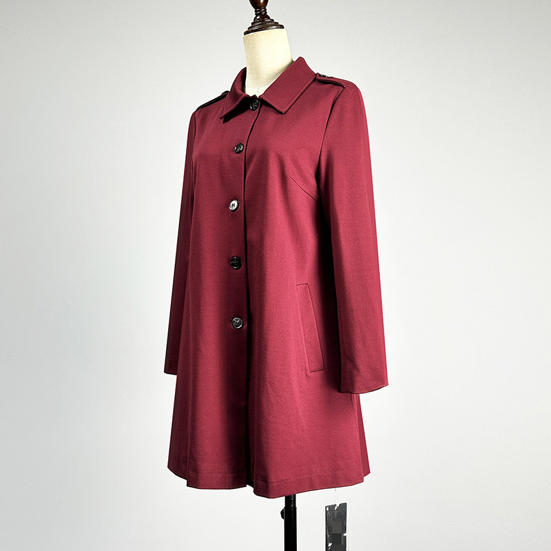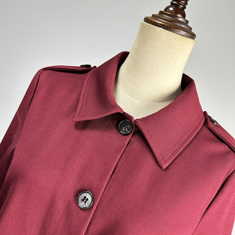 品牌中长款酒红色长袖风衣女2025修身显瘦A字版型单排扣简约外套