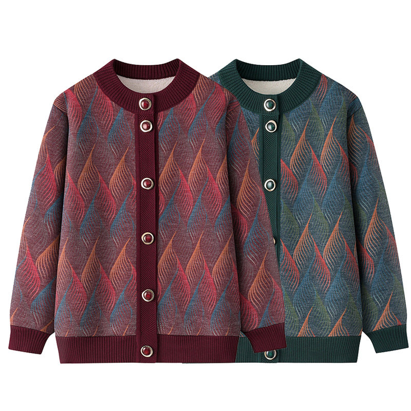 中老年人女装秋冬加绒毛衣60岁妈妈外套开衫高档奶奶打底衫针织衫