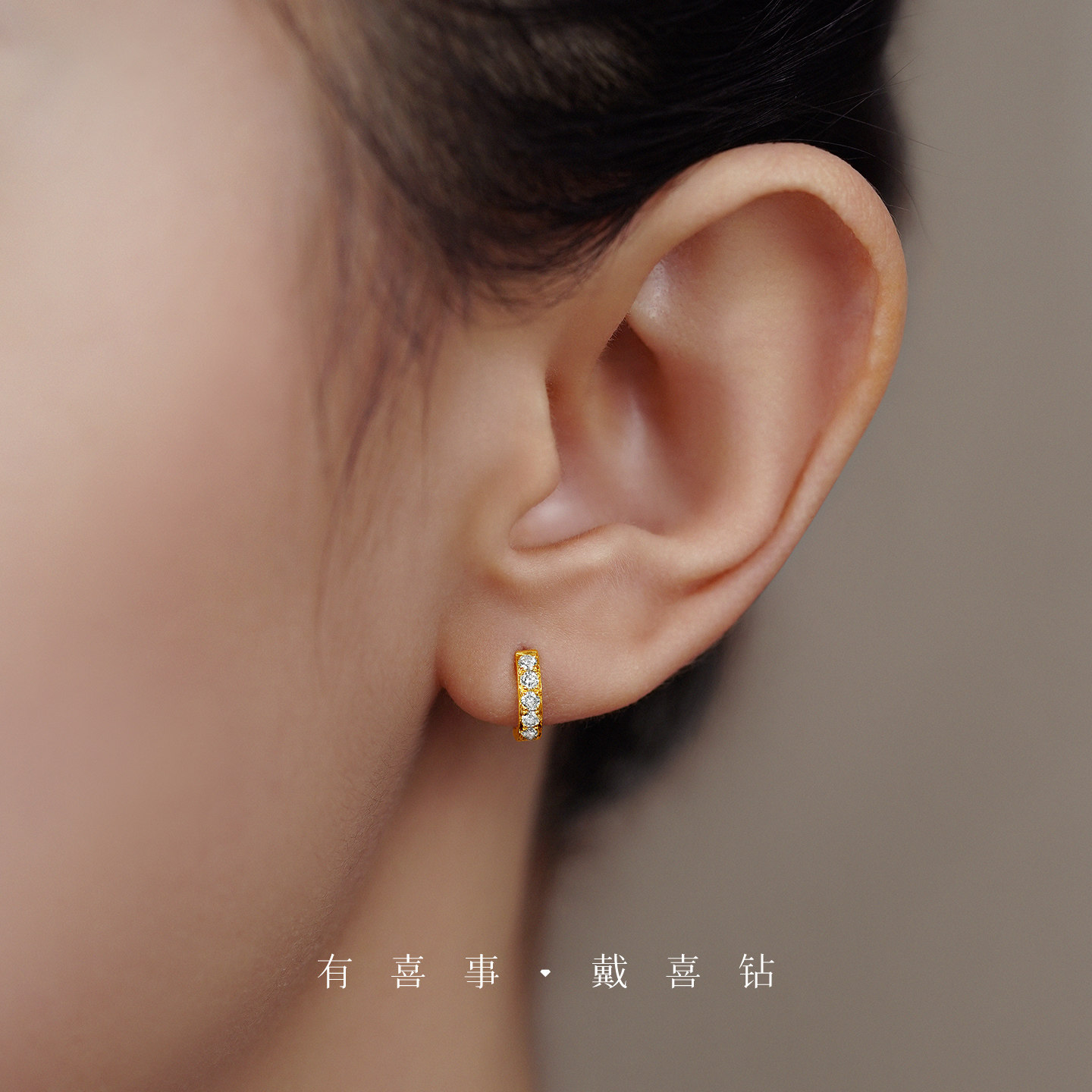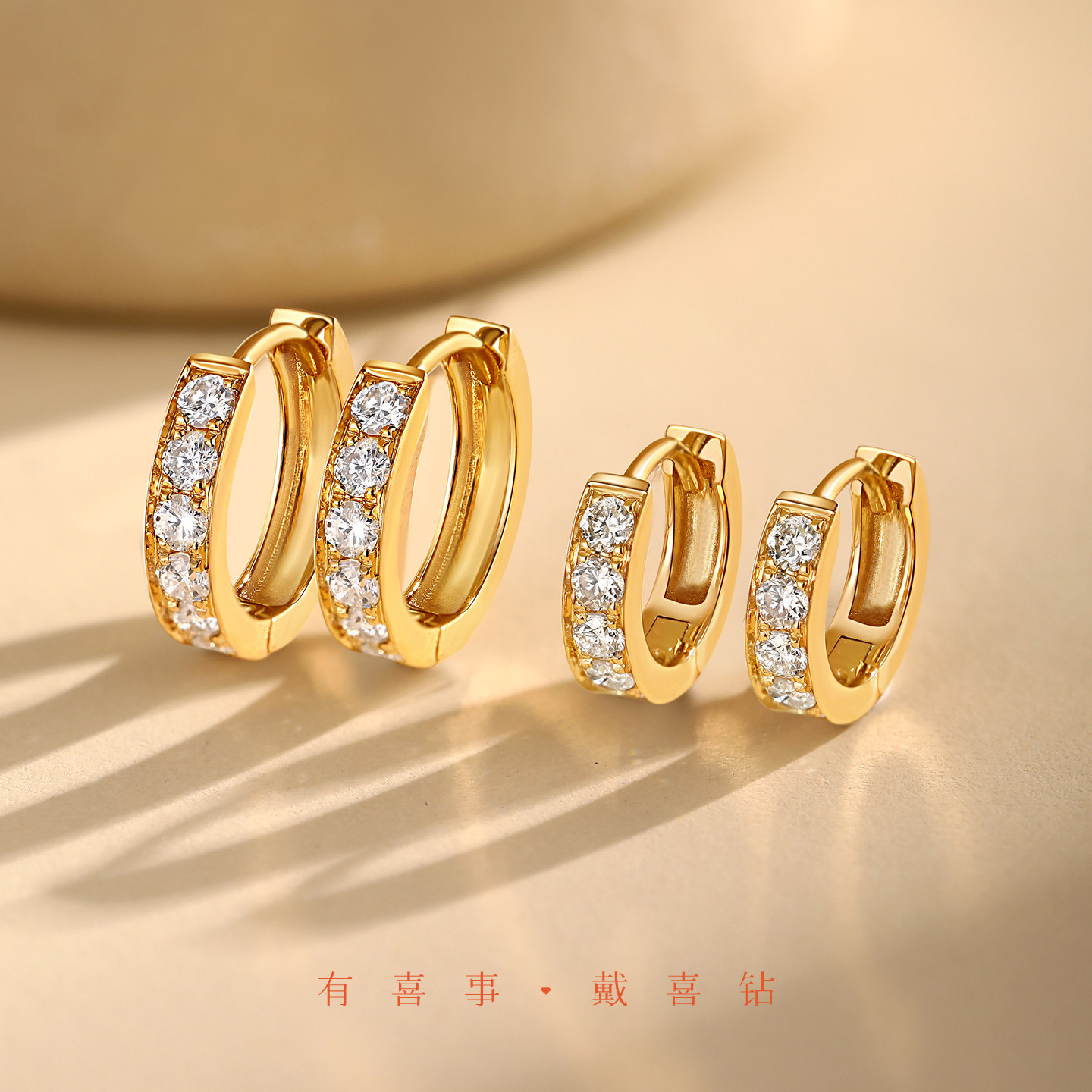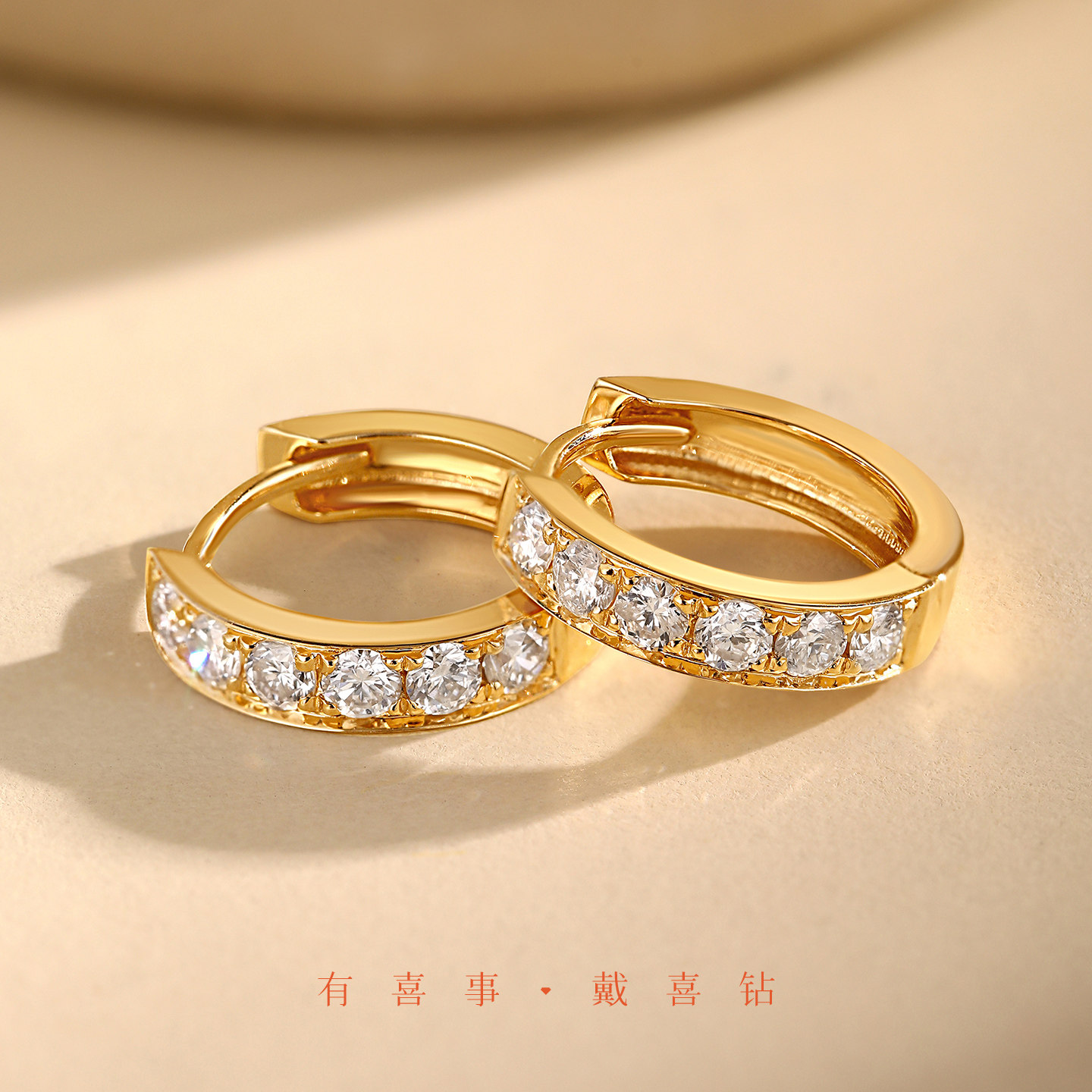 喜钻 18k金钻石耳环女18k金耳圈带钻天然真钻耳扣耳饰耳钉小耳圈