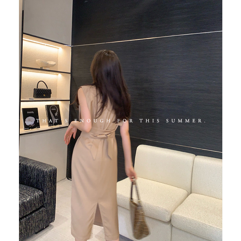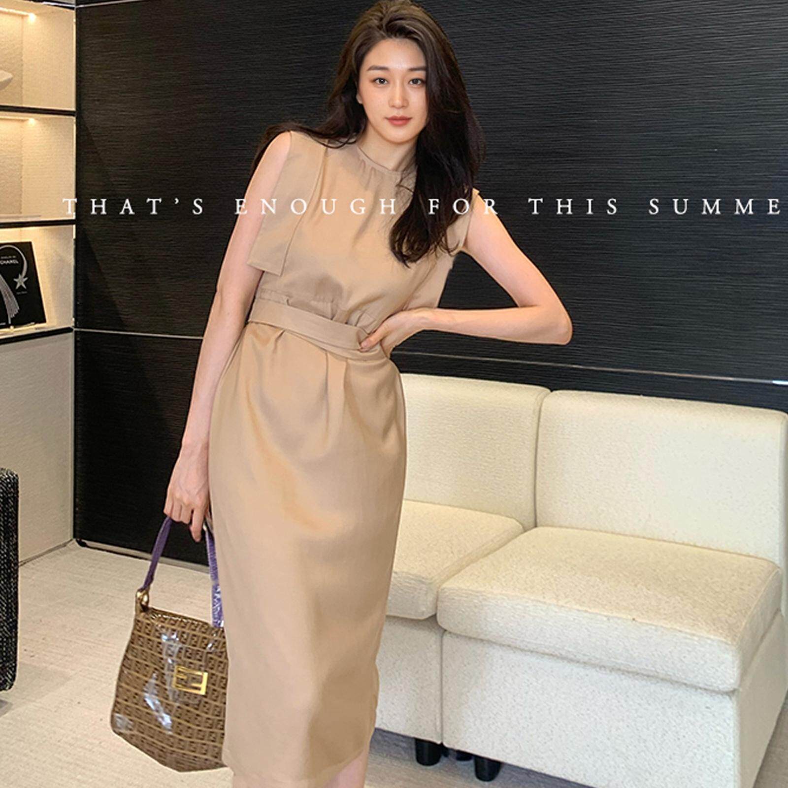 龍喜儿无袖收腰连衣裙亚麻
