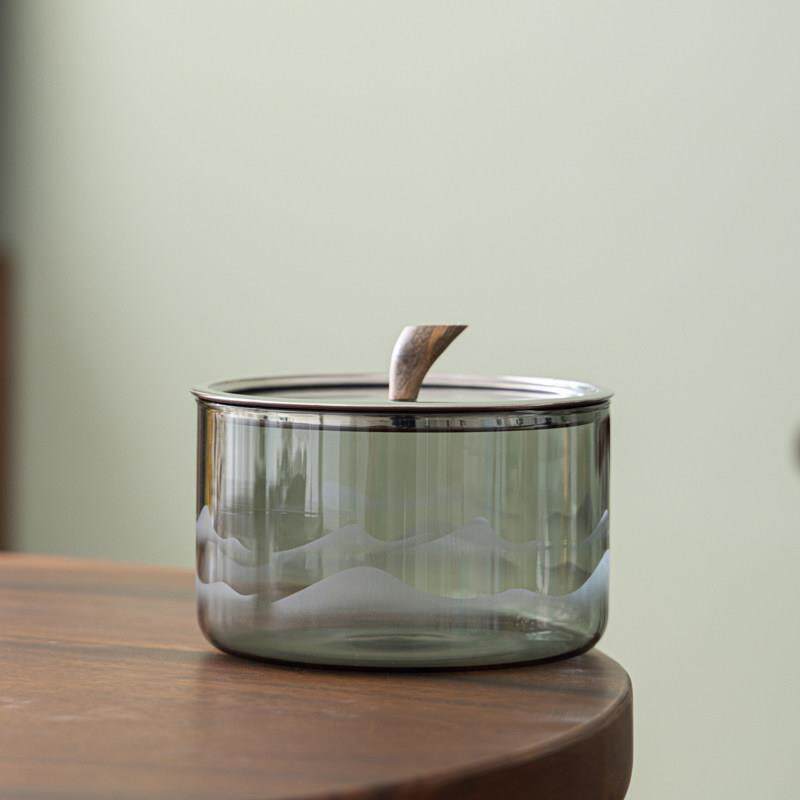 山峦玻璃茶洗缸笔洗水盂水洗带盖子茶杯消毒锅耐高温茶具配件茶道