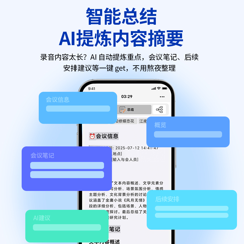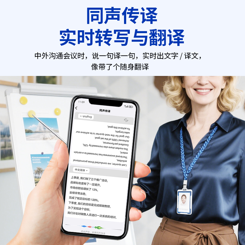 智能工牌AI录音笔随身专业高清降噪录音卡设备上课会议转转写翻译