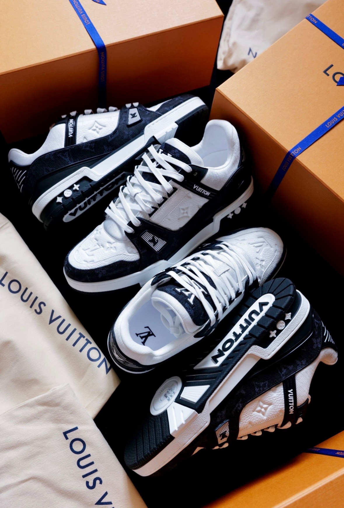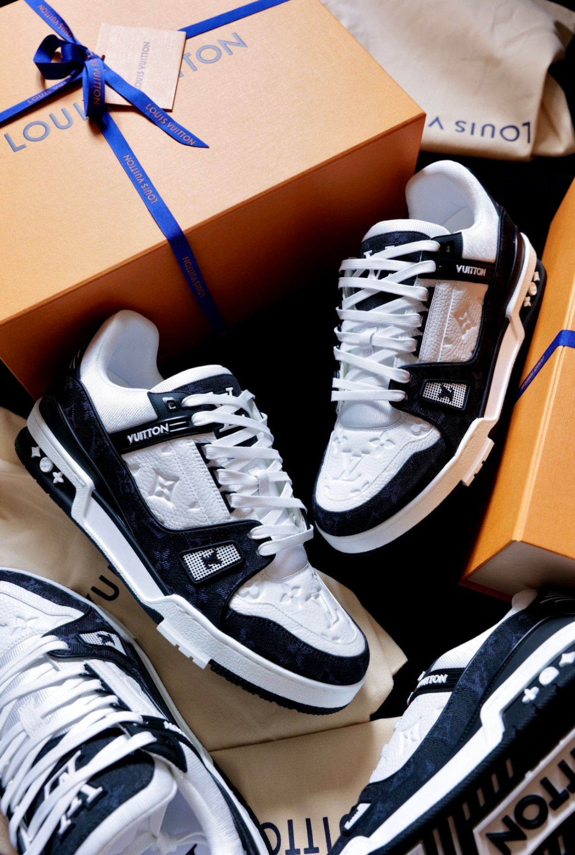 正品 Louis Vuitton 路易威登 Trainer 时尚板鞋黑白熊猫男女同款