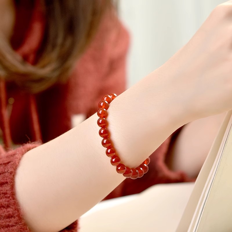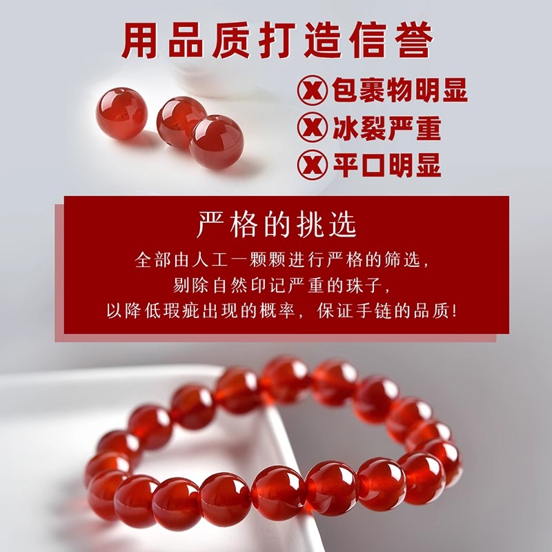 天然红玛瑙手串女男散珠子手镯红色手链玛瑙手串石英岩玉镯