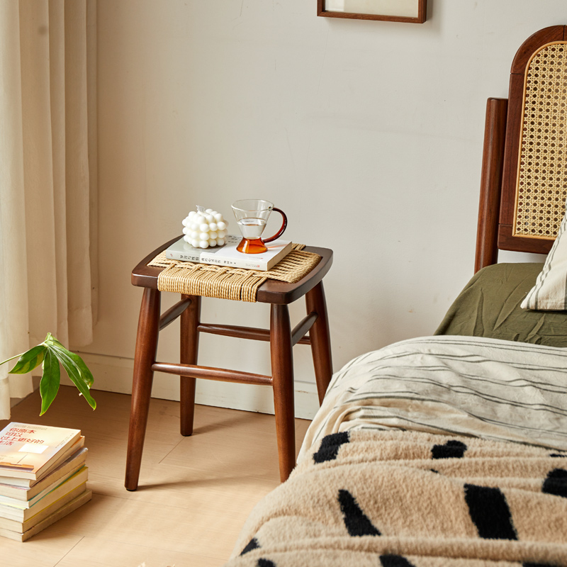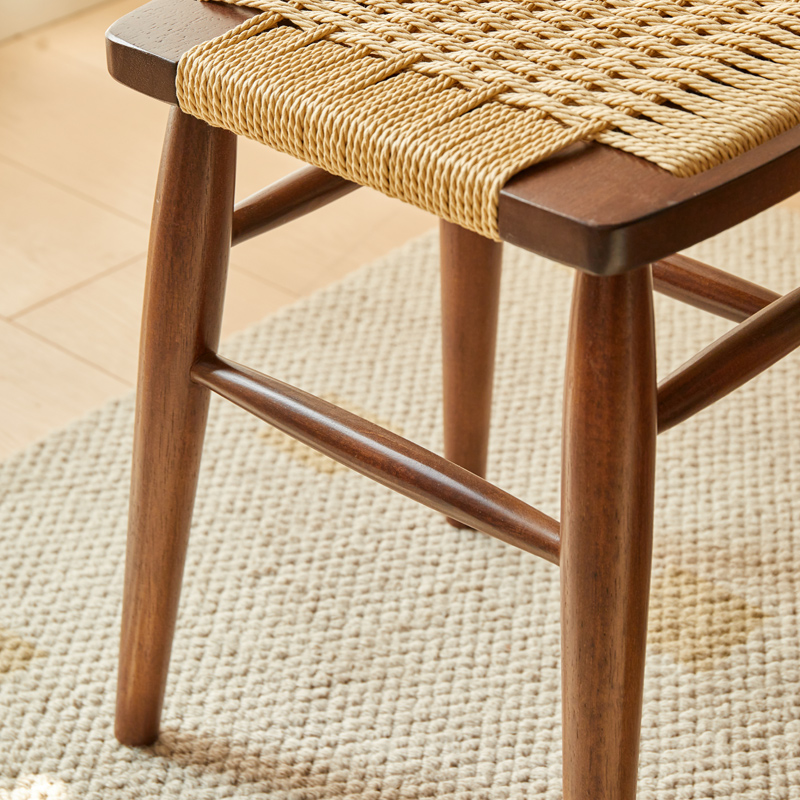 绳编方凳 餐凳实木椅餐椅家用编织换鞋凳原木梳妆凳北欧现代椅子