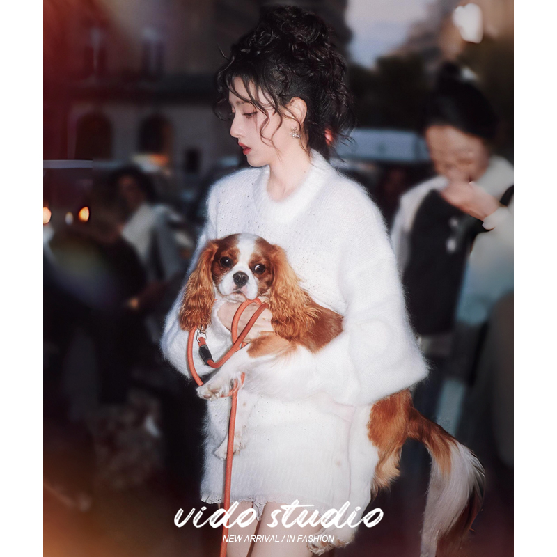 宋祖儿同款白色卡通猫咪亮片刺绣毛衣女宽松慵懒感可爱针织衫上衣