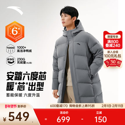 安踏六度芯羽绒服丨中长款鸭绒保暖棉服男士春季新款防寒加厚外套