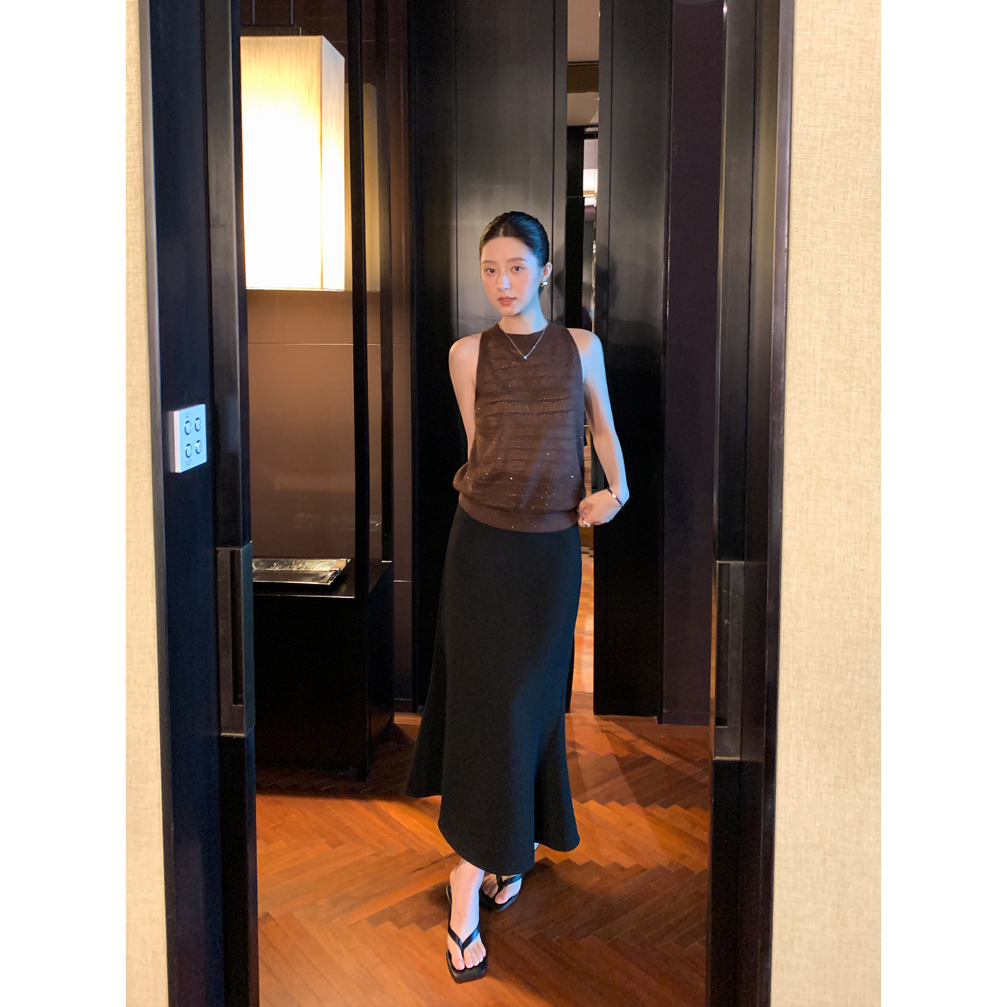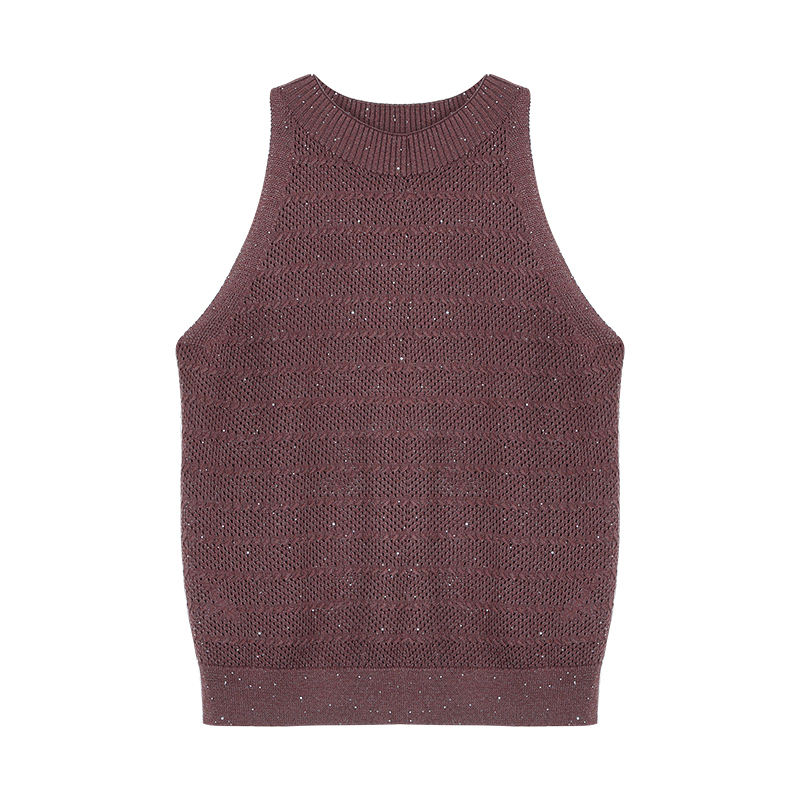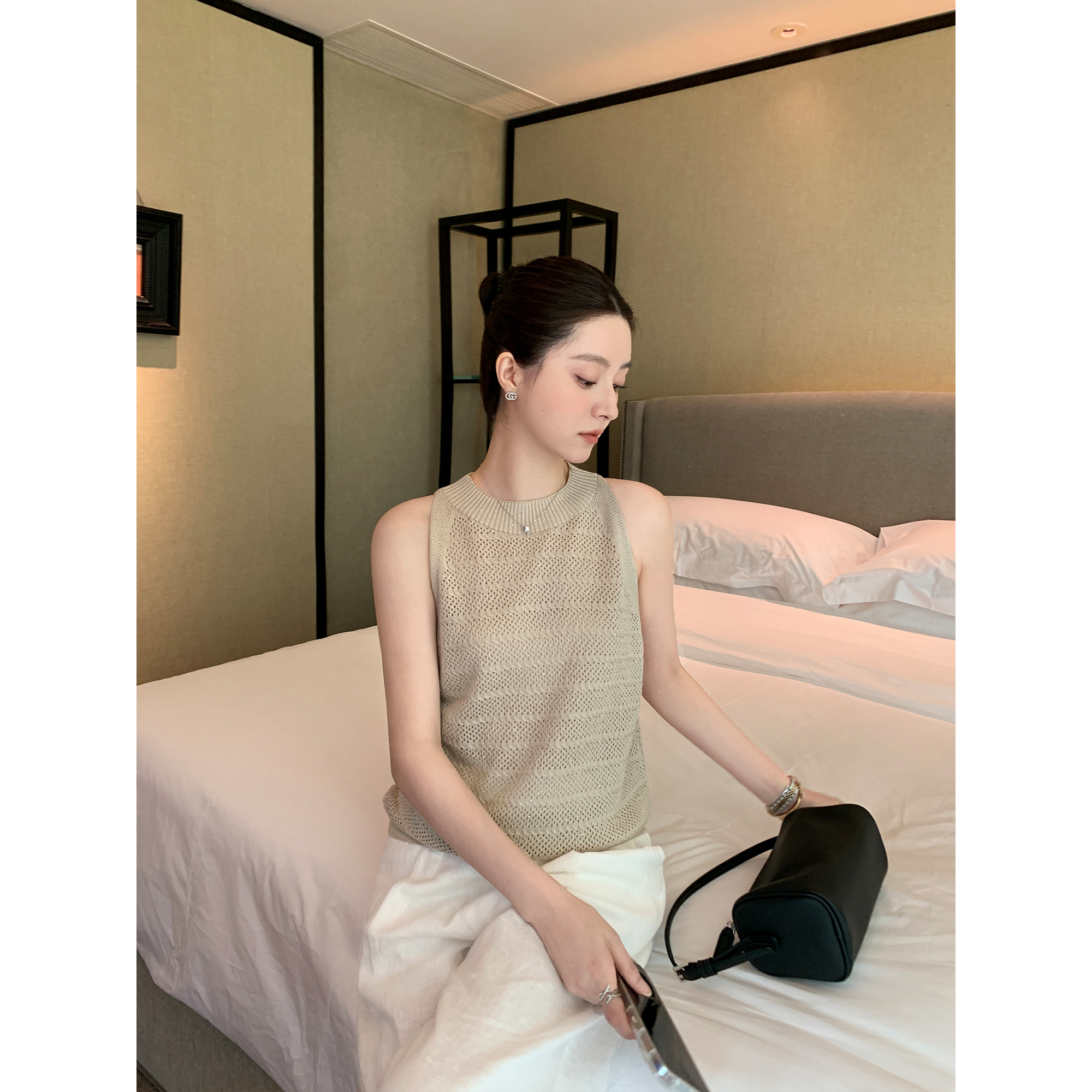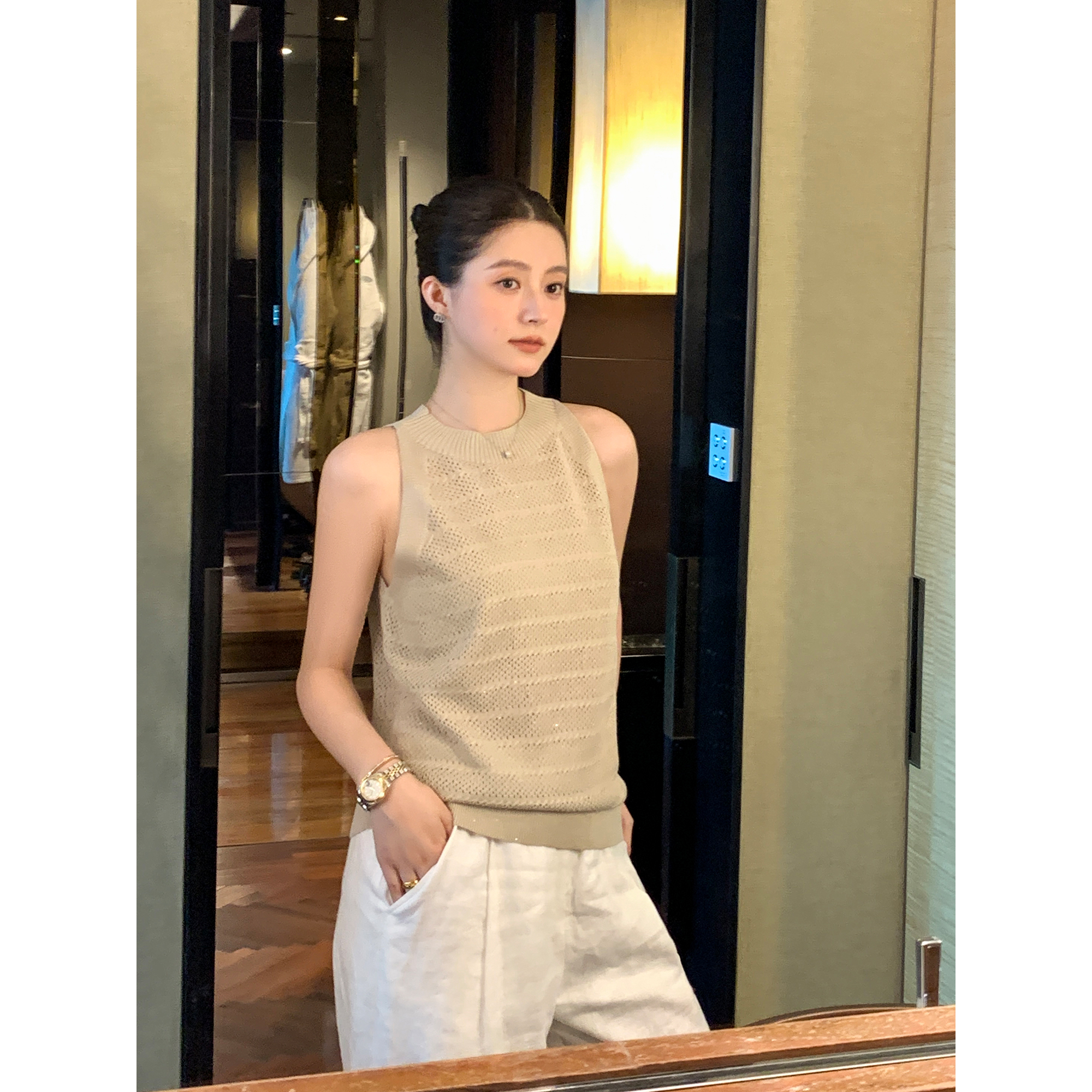 Maven Lin 老钱风镂空肌理感针织背心吊带女极简微透宽松无袖上衣