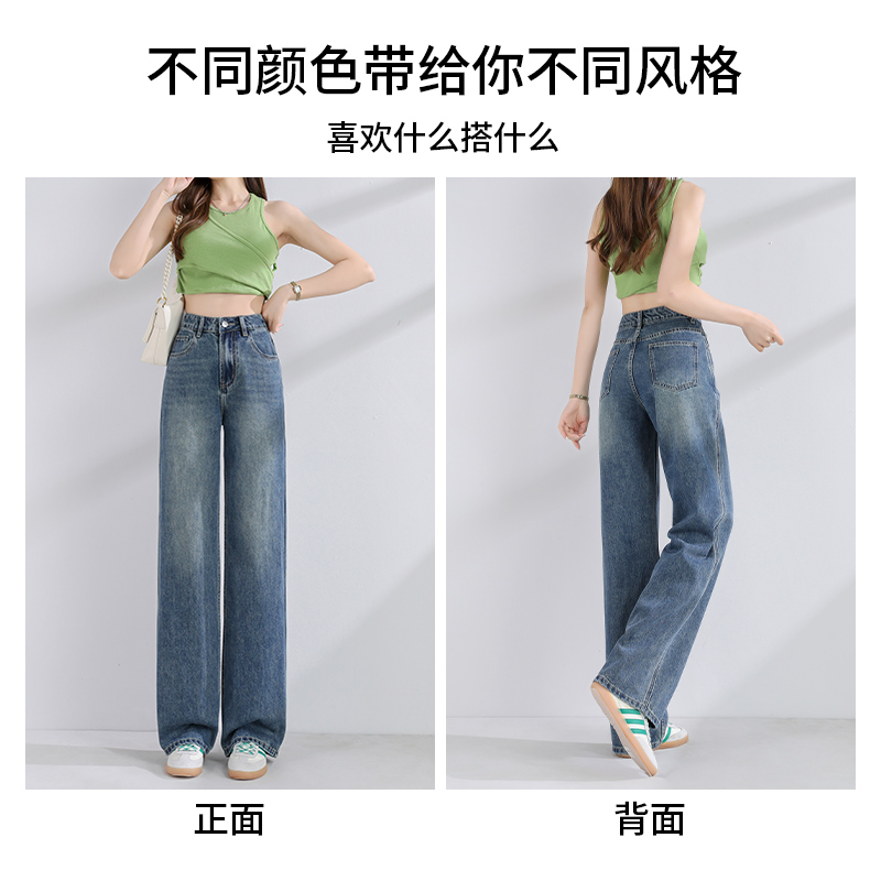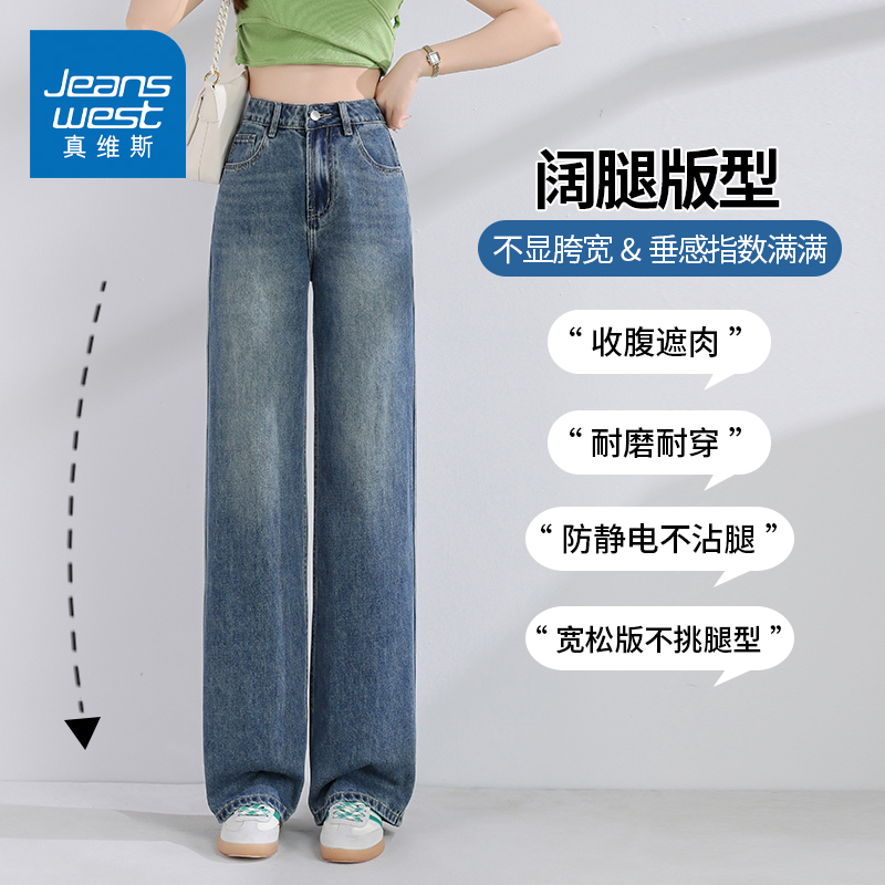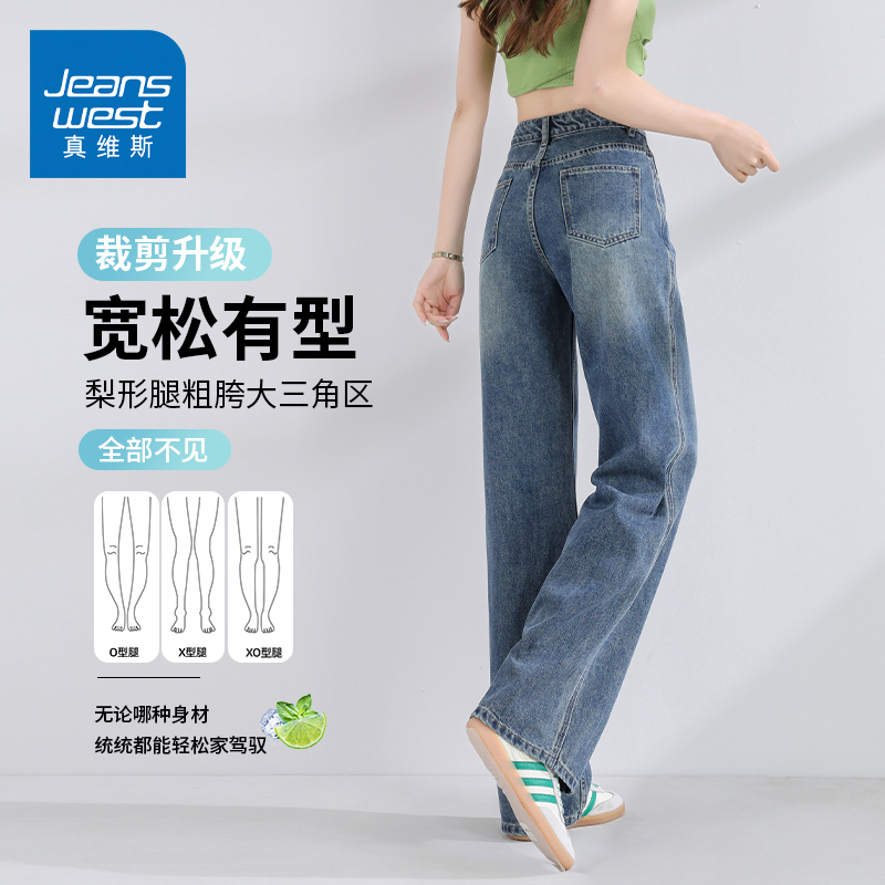 KZH真维斯高腰牛仔裤女夏季新款韩版宽松直筒裤复古阔腿休闲长裤