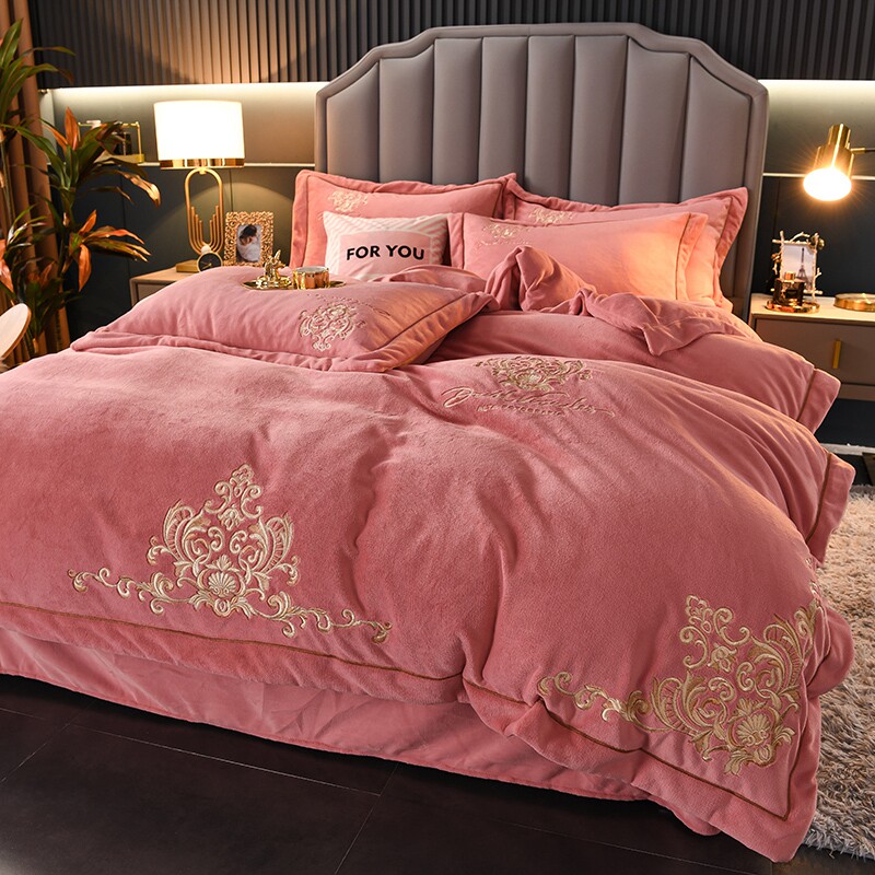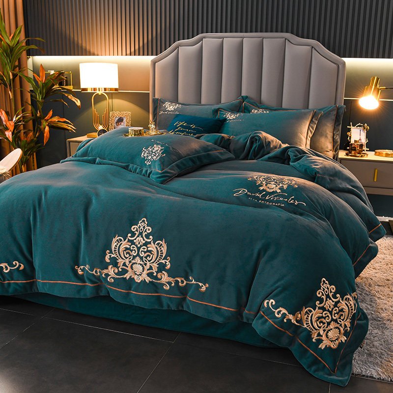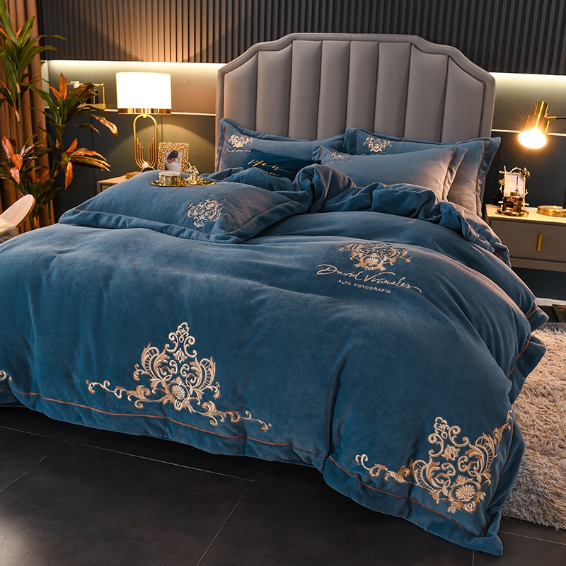 高档欧式刺绣牛奶绒四件套双面绒冬季珊瑚绒法兰绒加厚保暖绒被套