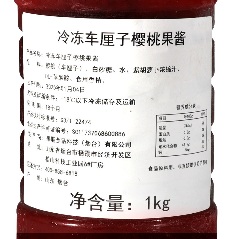 冷冻车厘子樱桃果酱1kg波兰进口大樱桃霸气车厘子原料饮品奶茶店