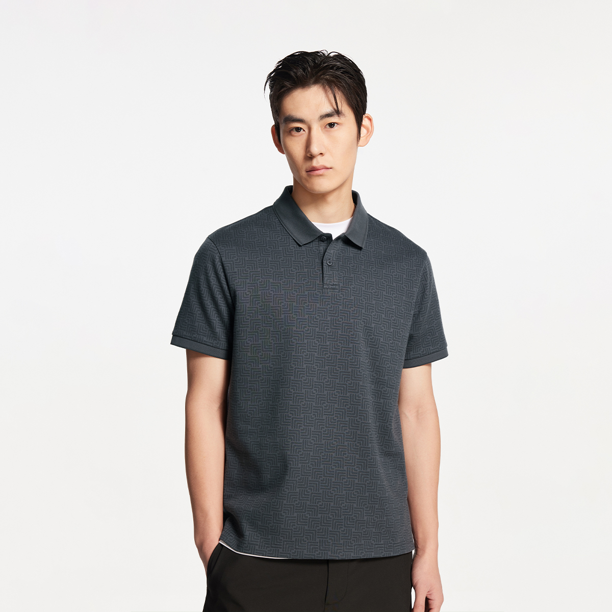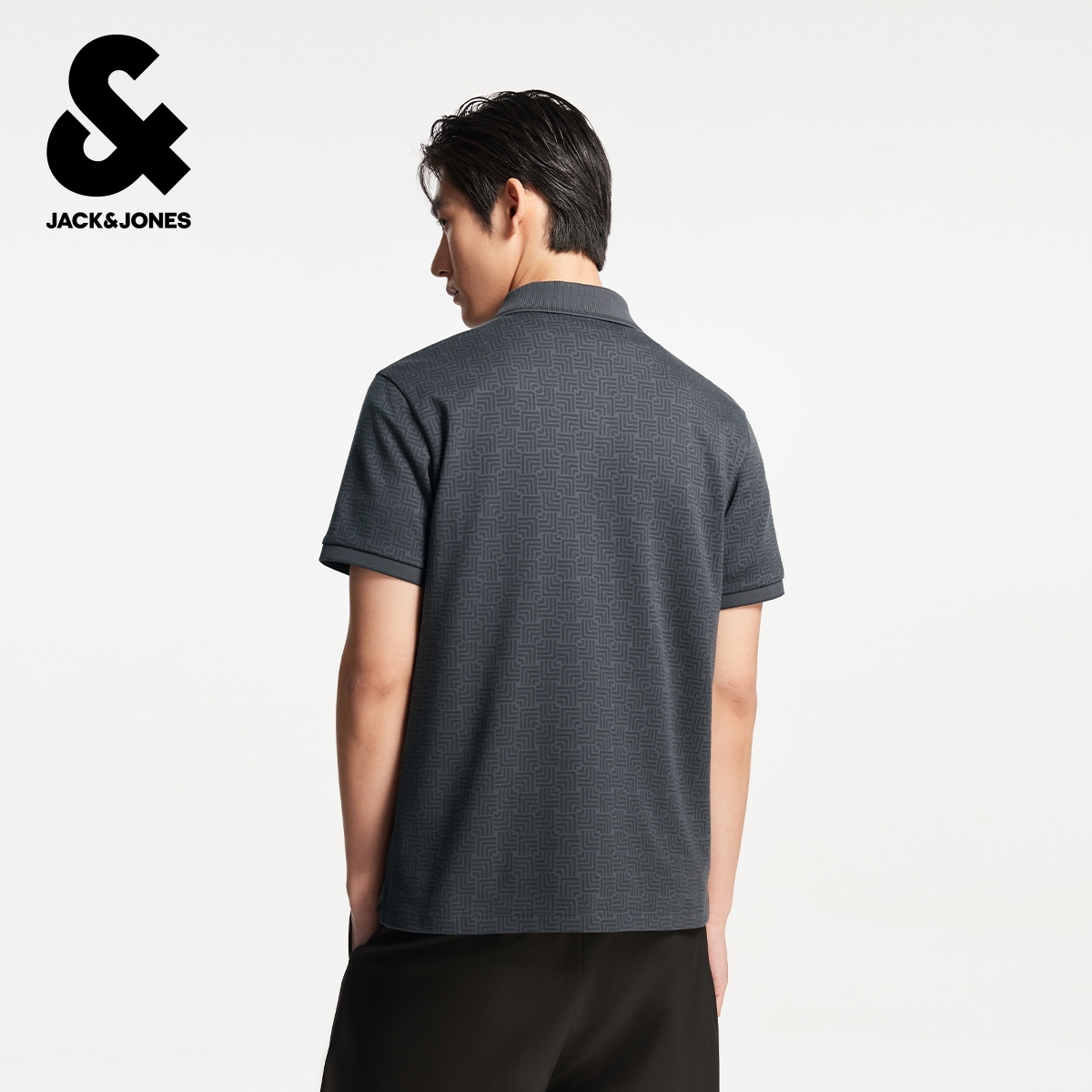 kq区绫致杰克琼斯NBA联名款男满印提花直筒休闲翻领polo衫短袖T恤