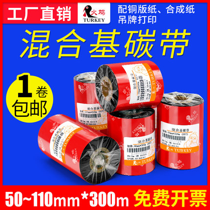混合基碳带110x300m 50 60 70 80 90斑马佳博立象tsc条码打印机碳带卷铜版合成纸不干胶标签打印色带条卷碳纸