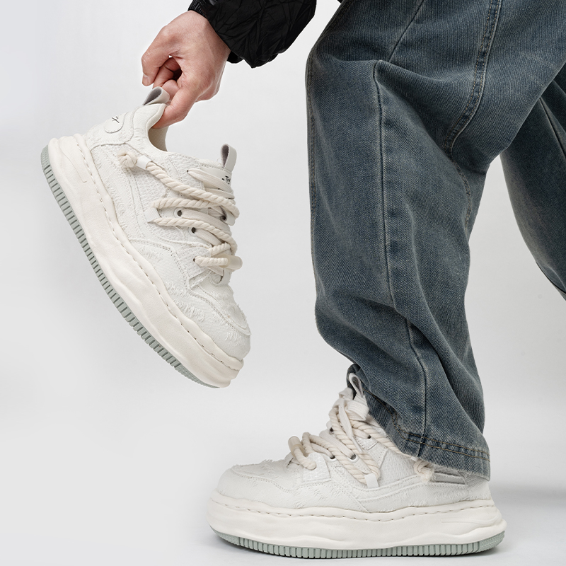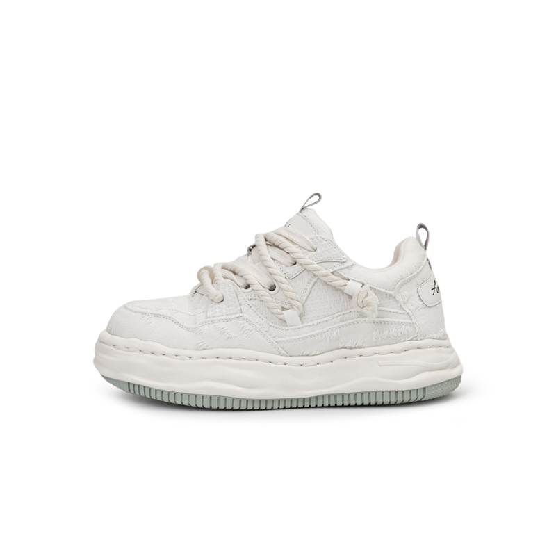 白色厚底帆布鞋男女情侣款休闲面包鞋小众7cm隐形内增高溶解板鞋