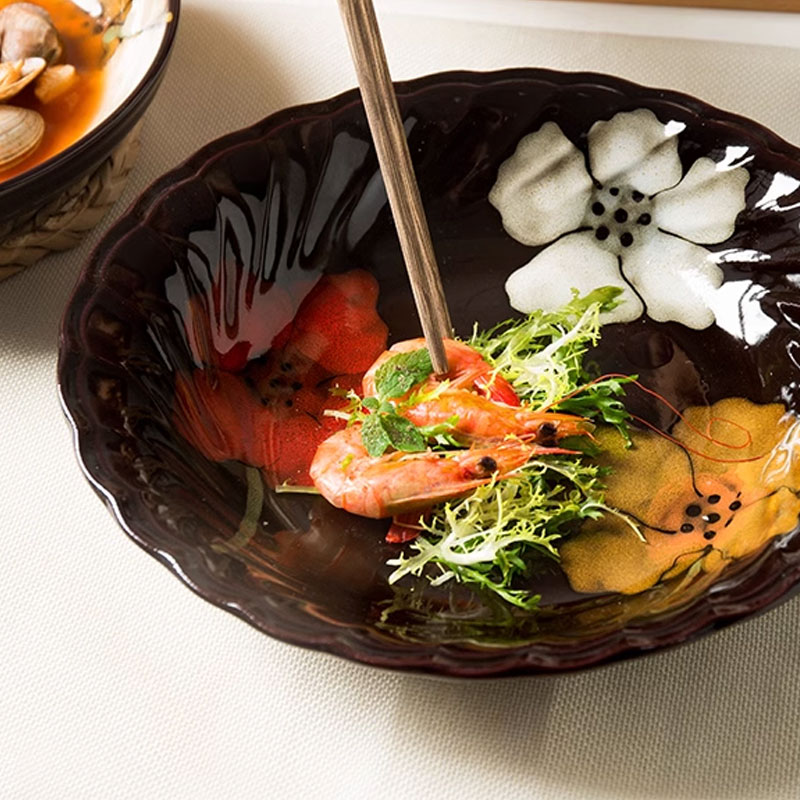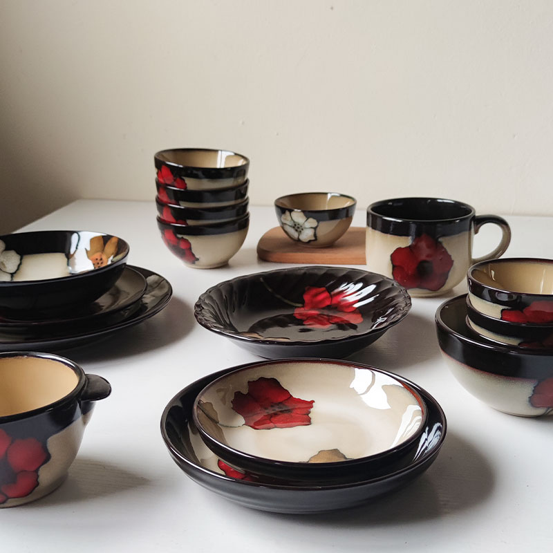 花语餐具套装 日式陶瓷碗家用创意简约饭碗面碗汤碗菜碟碗盘微瑕