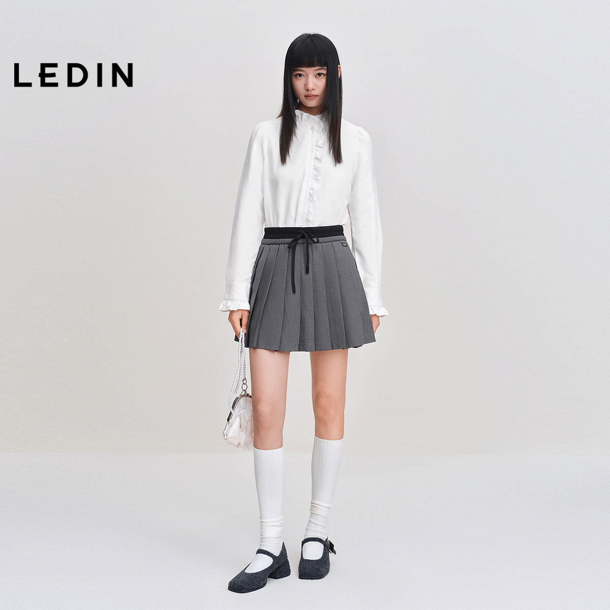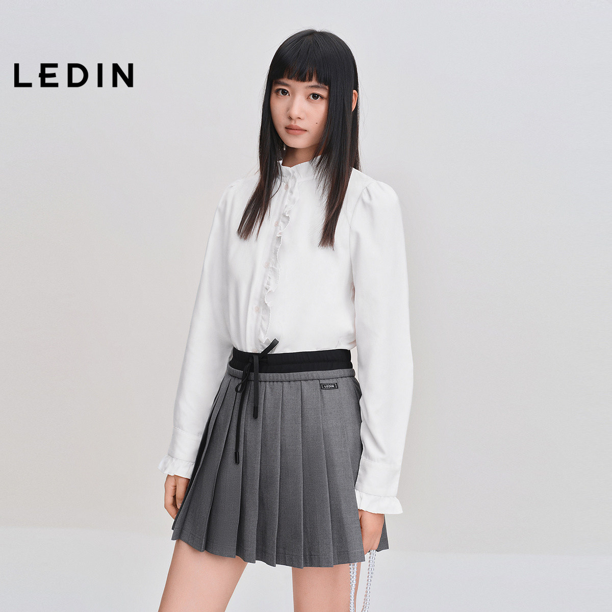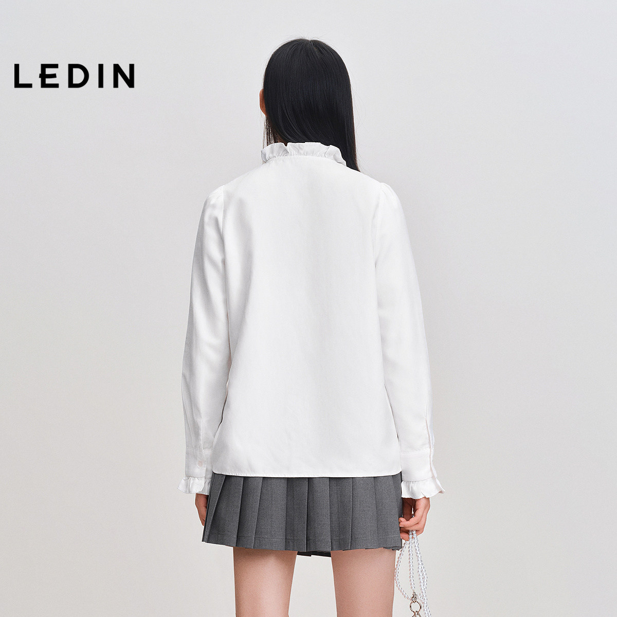 乐町白衬衫女设计感小众女士法式复古系带花边长袖立领甜美上衣