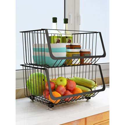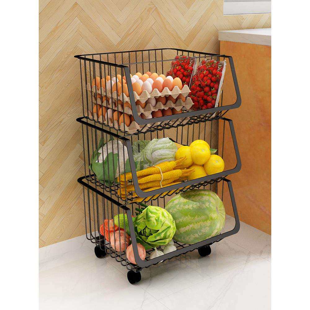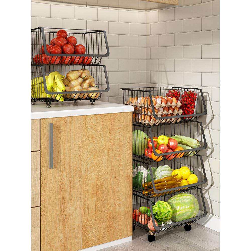 厨房置物架落地多层放菜篮子家用蔬菜水果架可移动带轮收纳储物框