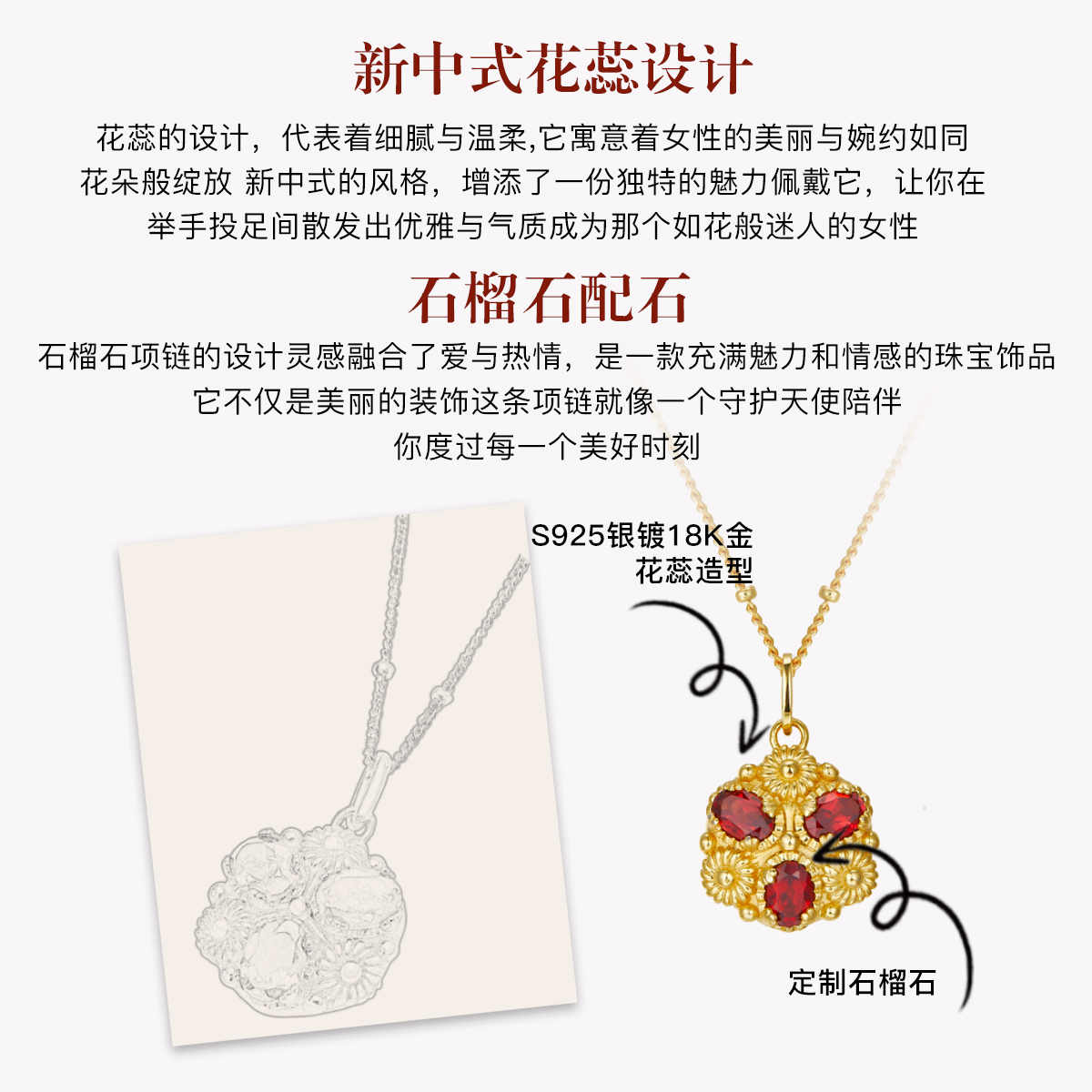 花蕊项链女 新中式国风吊坠女款高级感轻奢小众配饰天然石榴石
