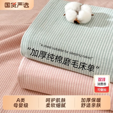 加厚纯棉磨毛床单单件A类母婴级100全棉枕套三件套被单学生宿舍