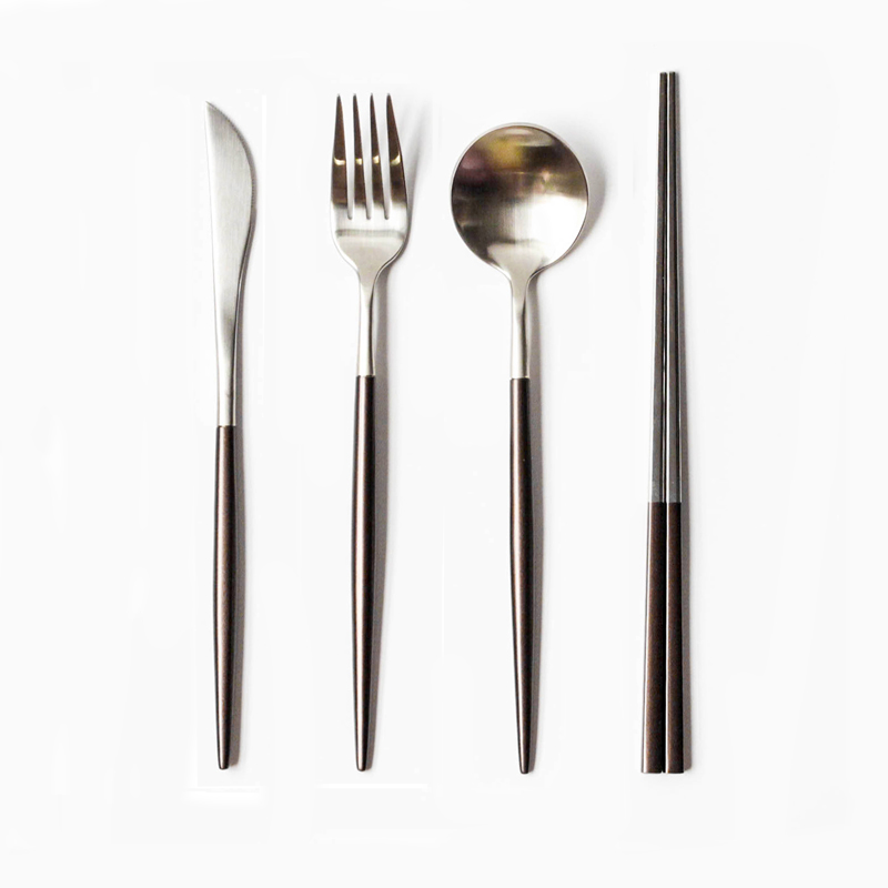北欧ins风网红刀叉勺304不锈钢棕柄西餐餐具套装全套网红勺子筷子