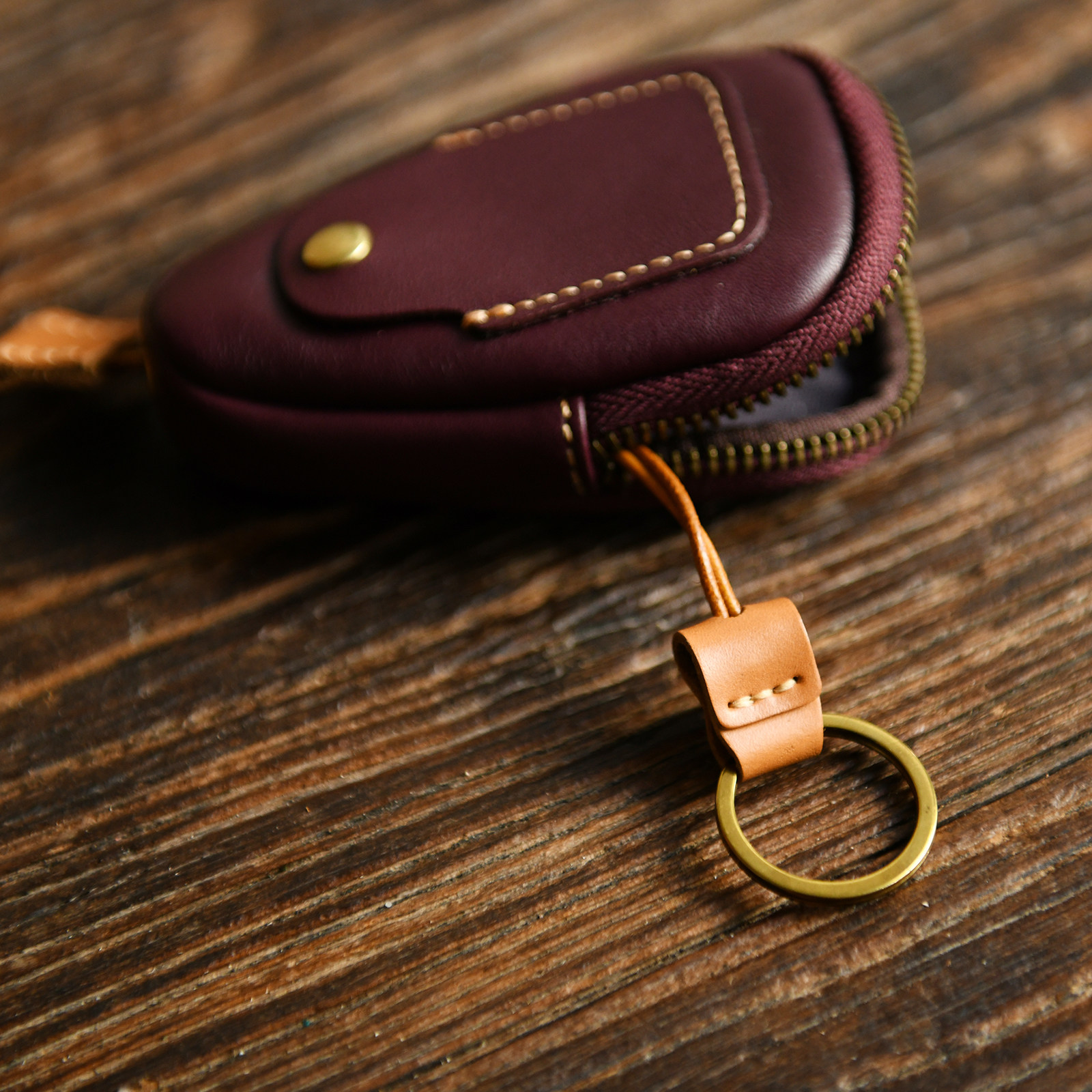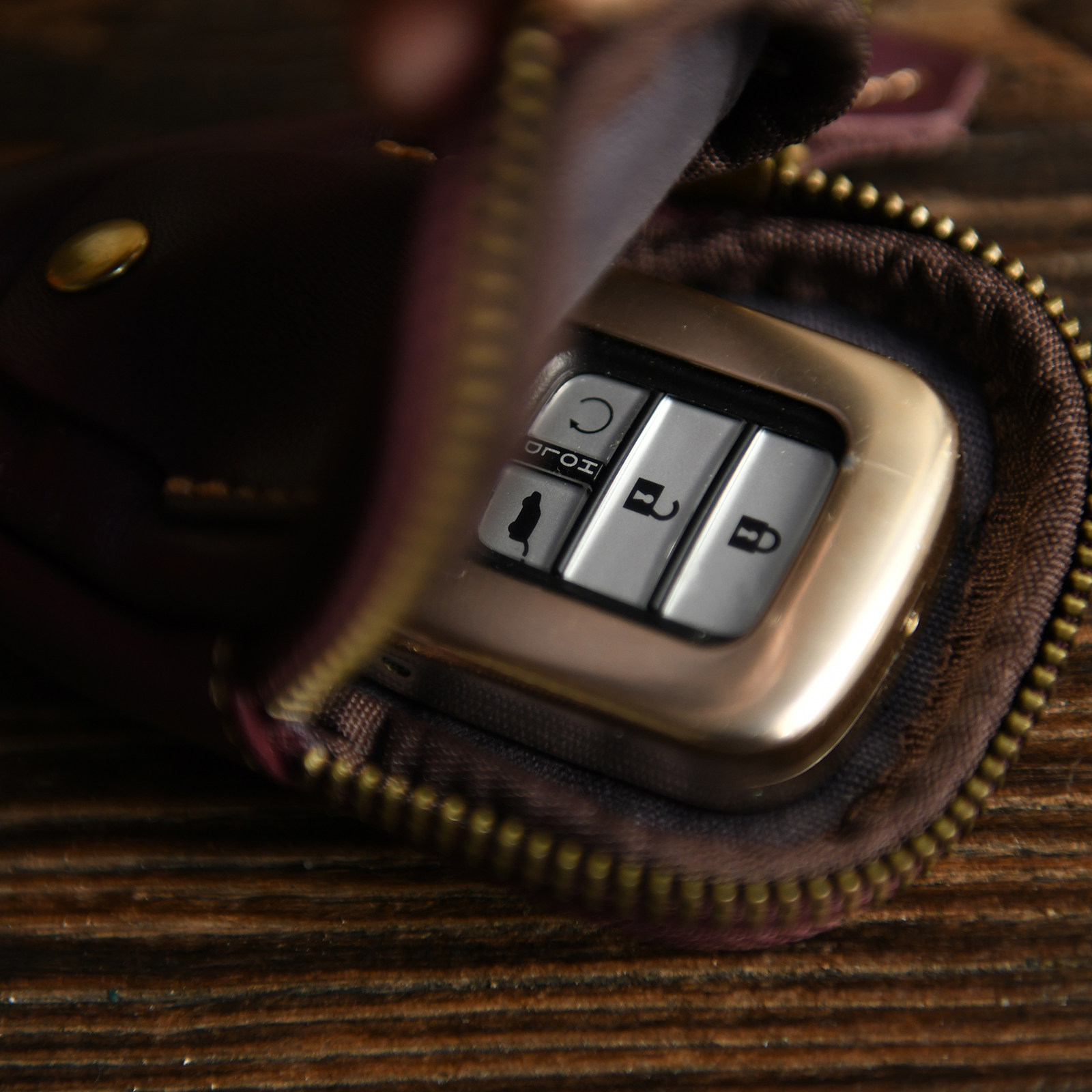 手工真皮汽车钥匙包头层牛皮拉链抽绳家用锁匙包男女通用车钥匙套