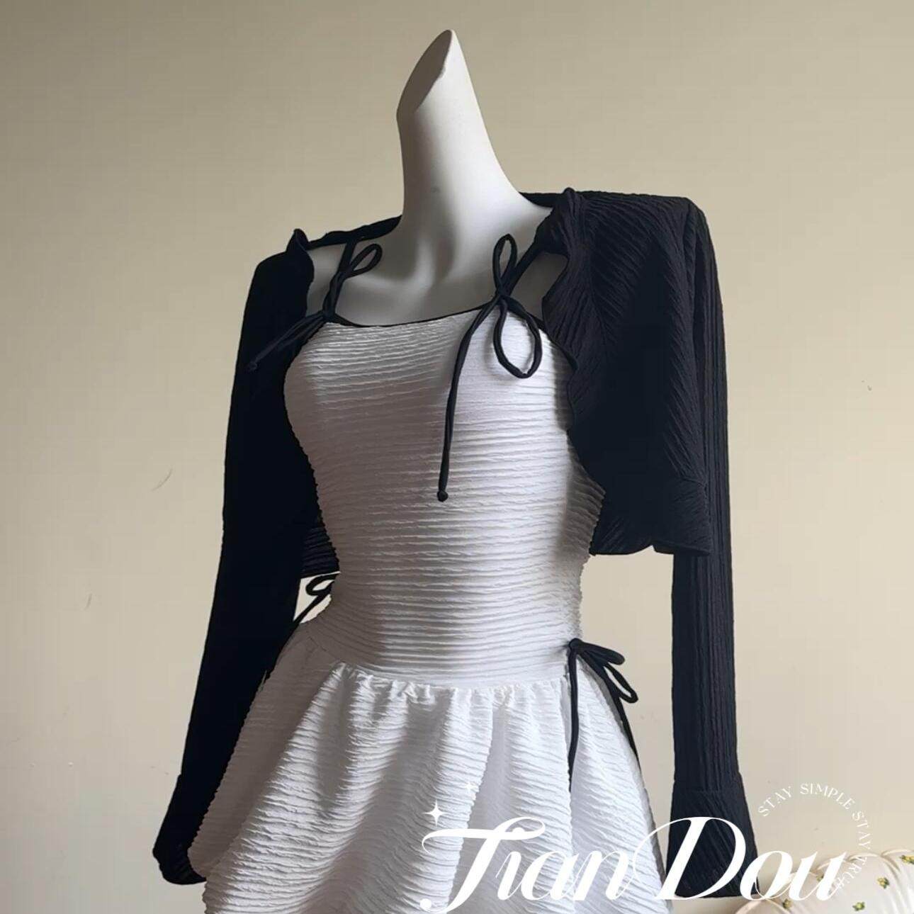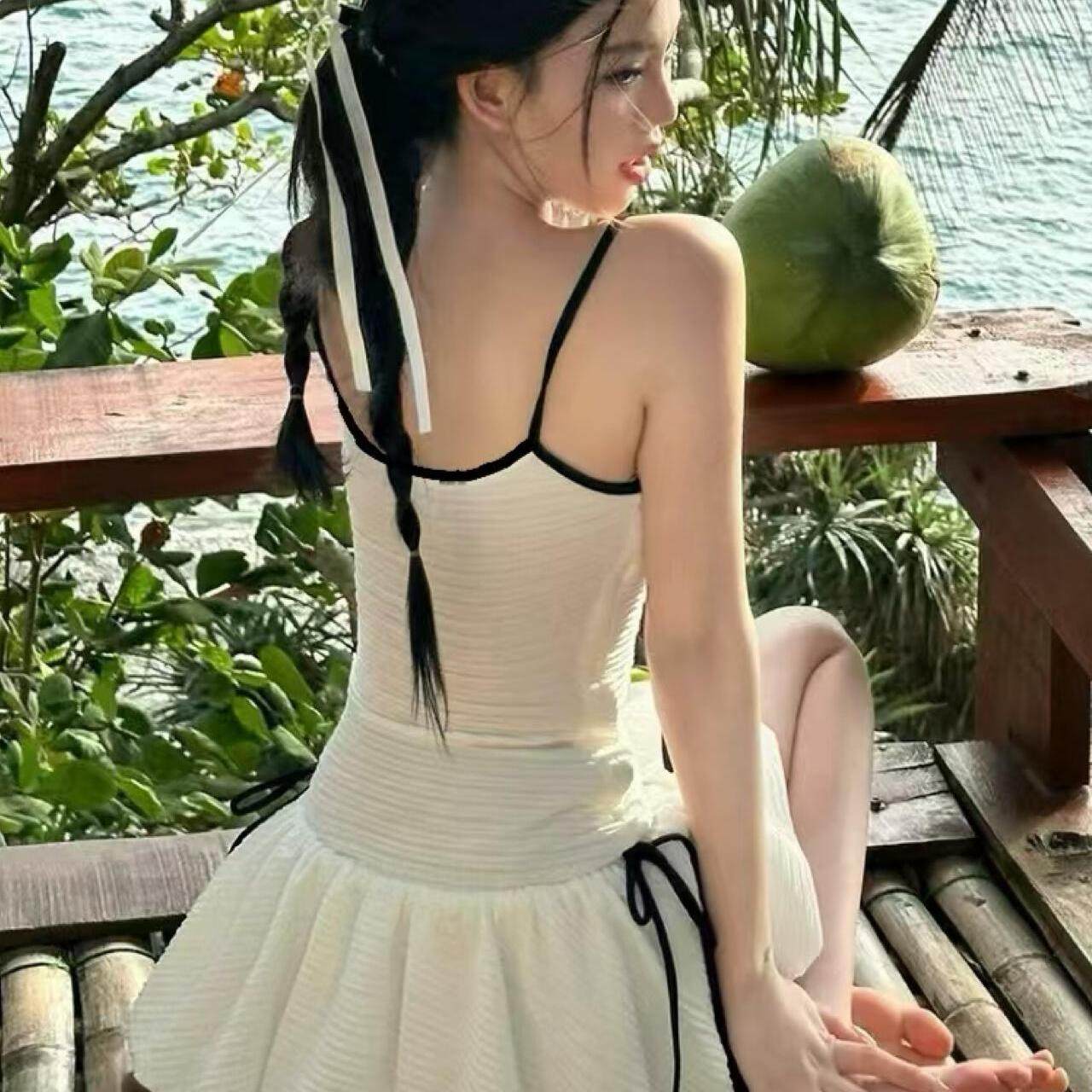 【安妮小熊】黑白质感温泉保守少女海边度假泳衣连体两件套