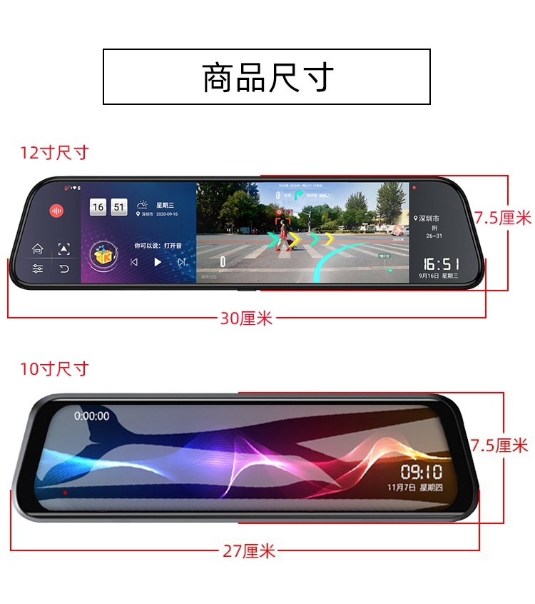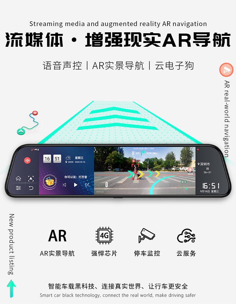 AR实景导航声控行车记录仪远程监控音乐倒车载智能前后视镜一体机