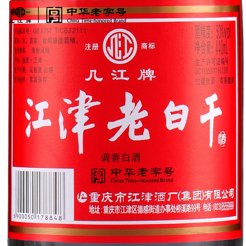 中华老字号几江牌50度440ml*6瓶装江津老白干酒(小曲清香型白酒)