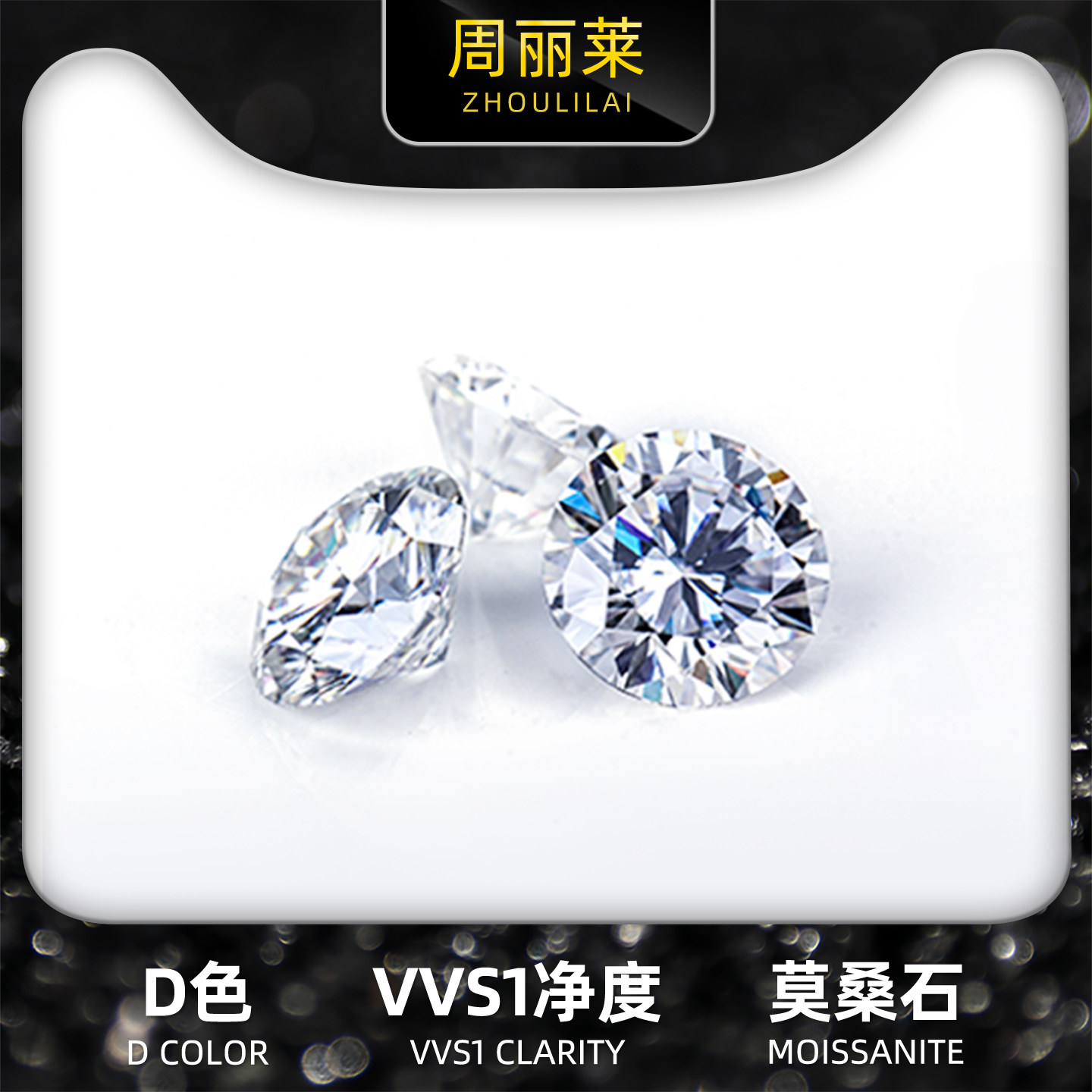 D色VVS1莫桑裸石10分-100克拉圆形八心八箭定制梅花切百面切裸钻