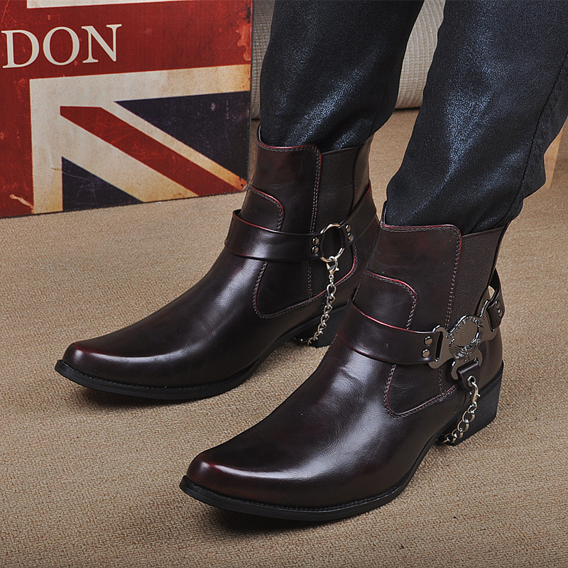 韩版高帮男靴新款靴子马丁靴潮流短靴尖头皮靴英伦男士内增高男鞋