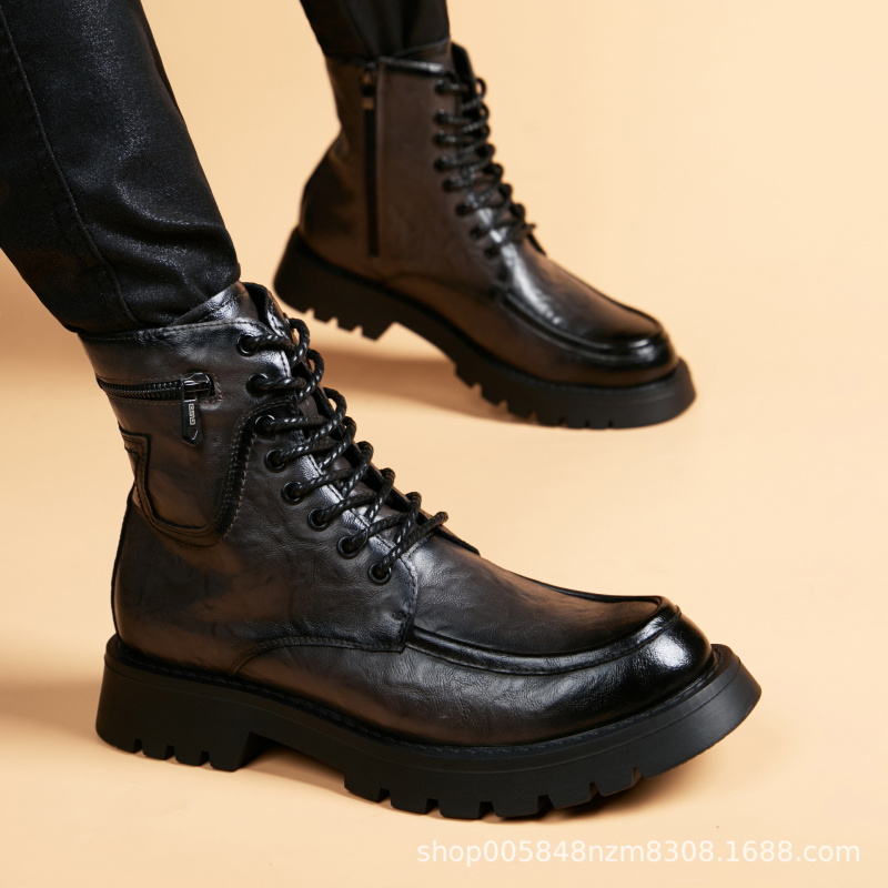 黑色新款马丁靴男青年潮流英伦厚底工装靴高帮男靴新款休闲皮鞋