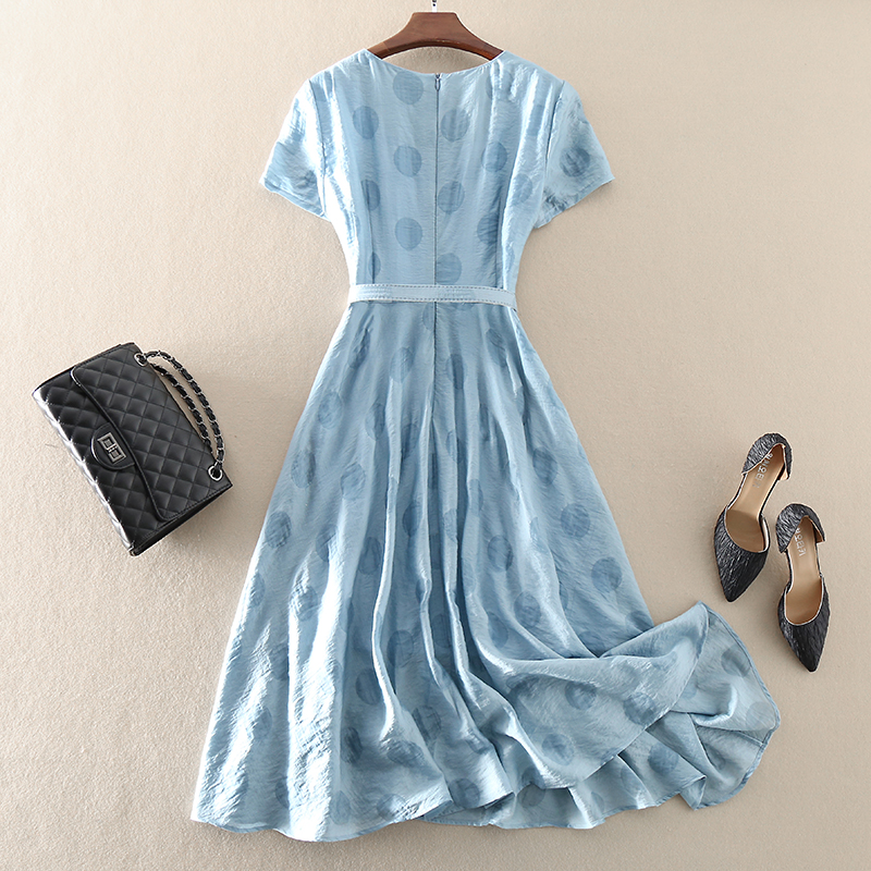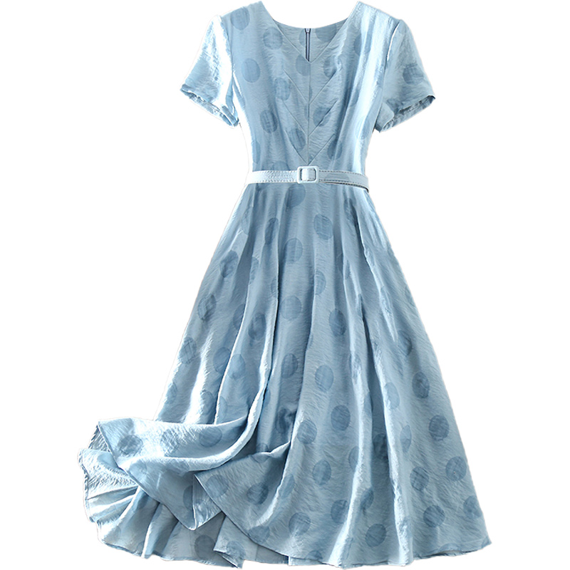 清仓夏季新款优雅高端女装中长款修身显瘦短袖波点印花天丝连衣裙