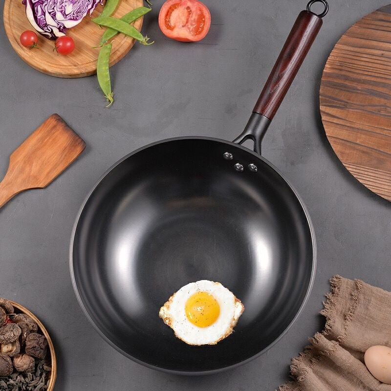 真铸铁炒锅无涂层不锈老式铁锅家用平底加深生铁锅电磁Z炉用炒菜