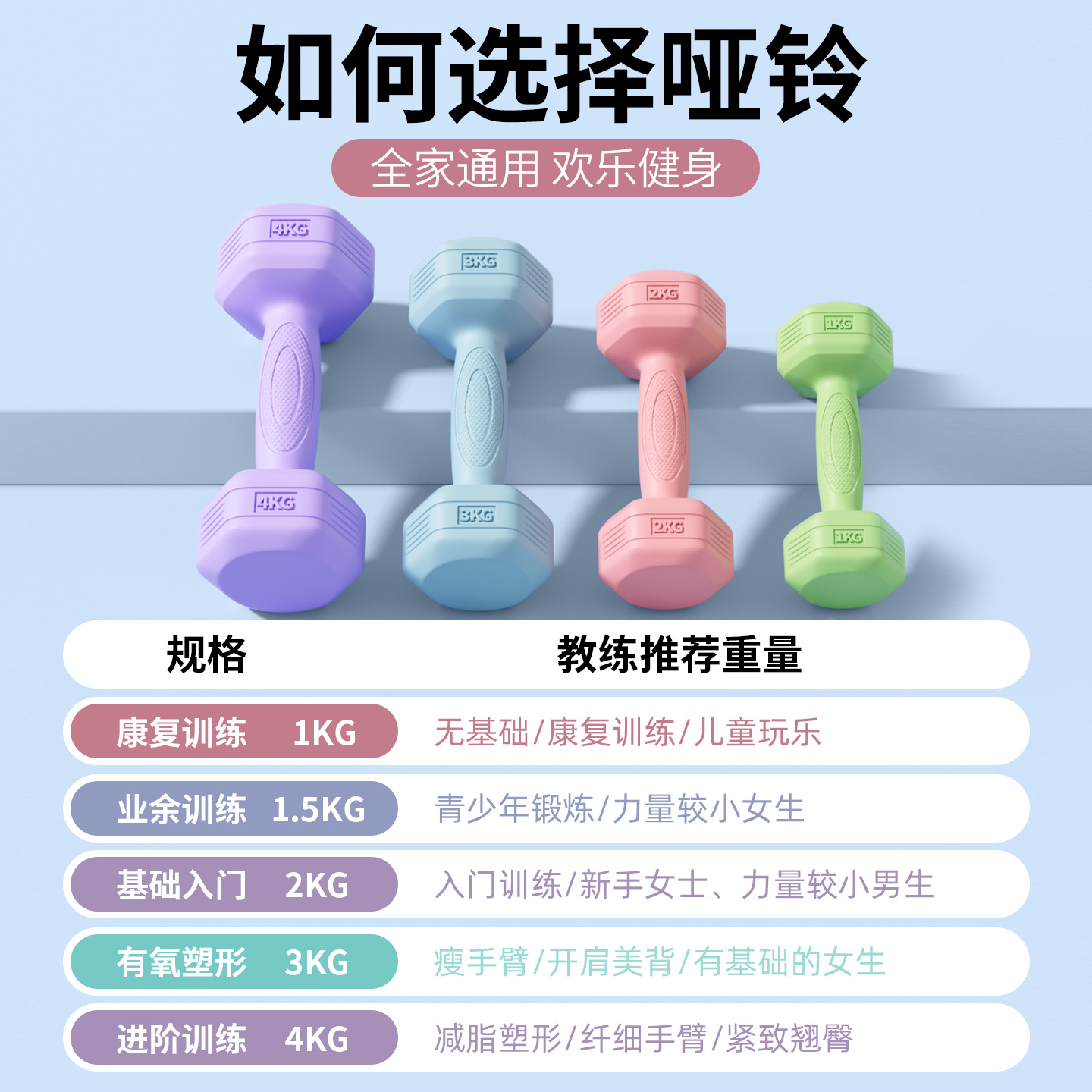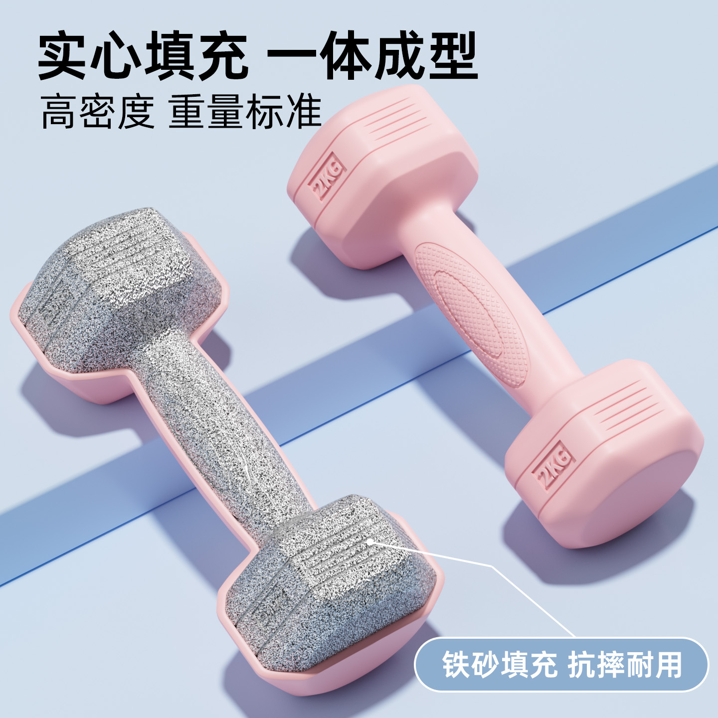 哑铃女士健身家用器材瘦肚子瑜伽儿童青少年女包胶小哑铃2KG一对