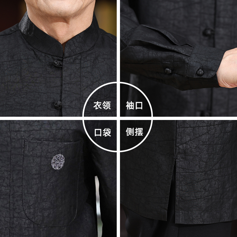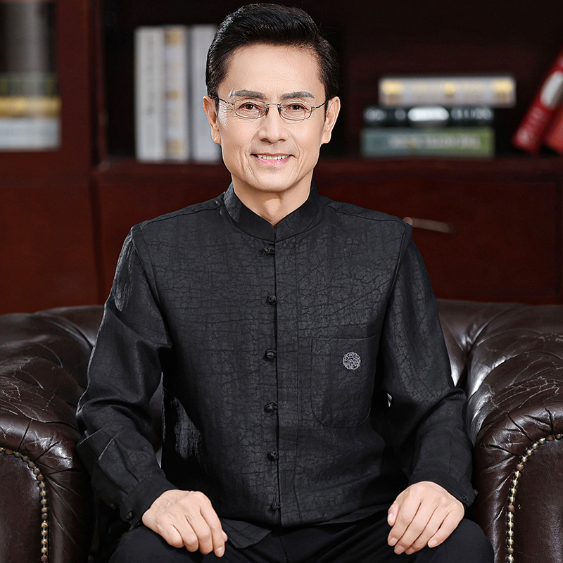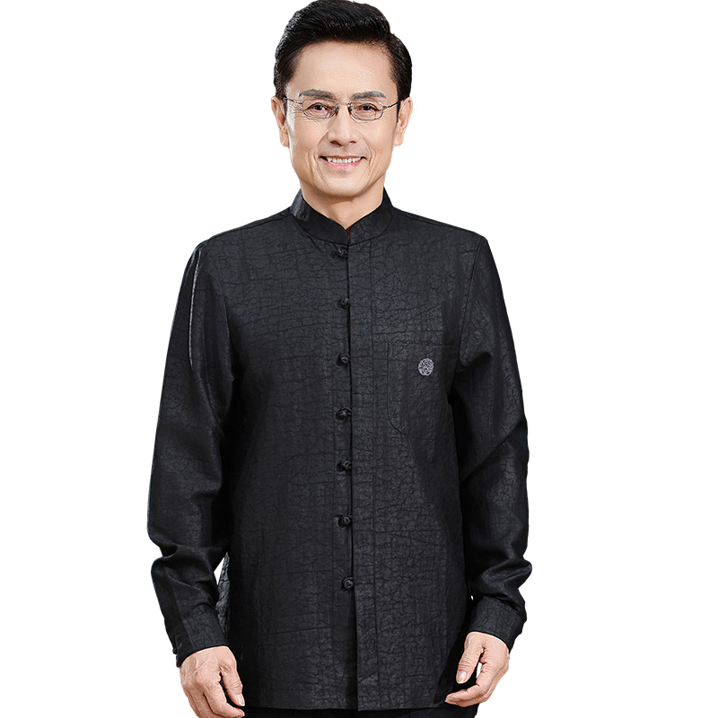 高档桑蚕丝香云纱男士长袖唐装中老年真丝衣服爸爸生日中式衬衫男