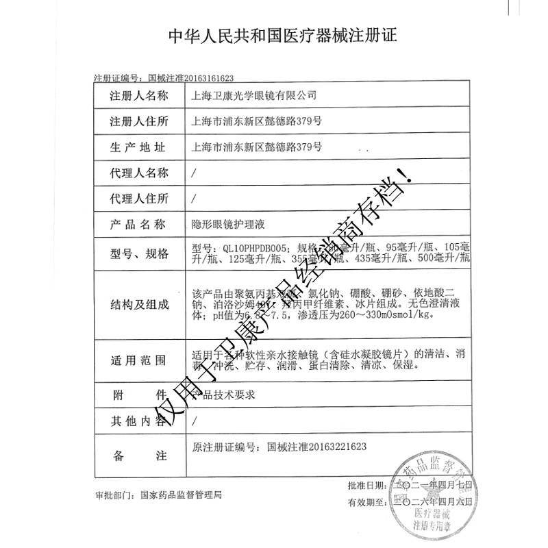 卫康隐形眼镜护理液500ml