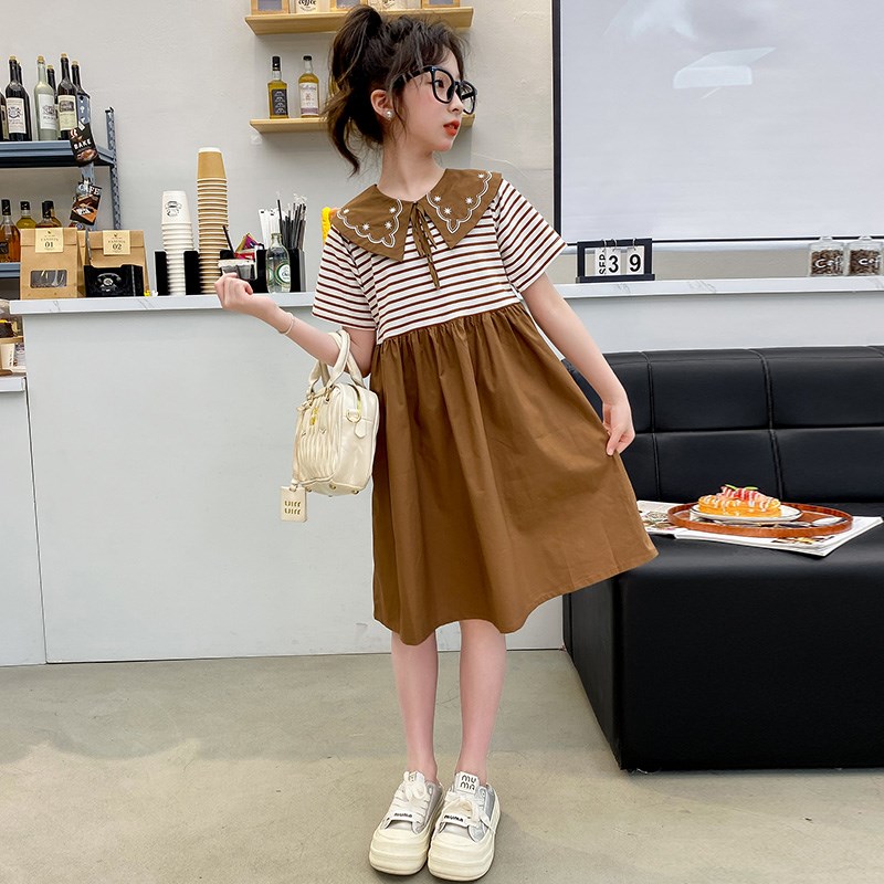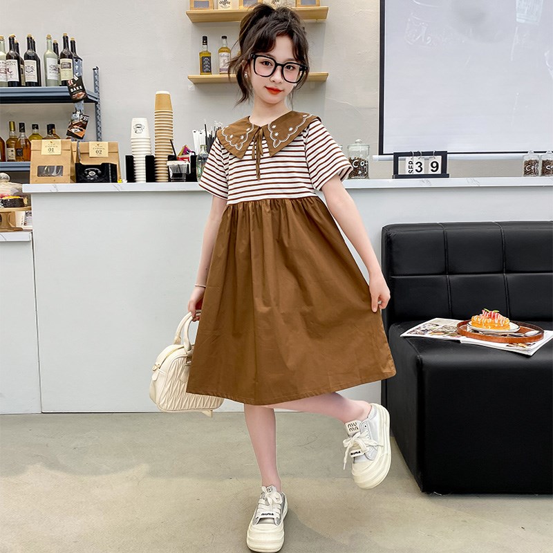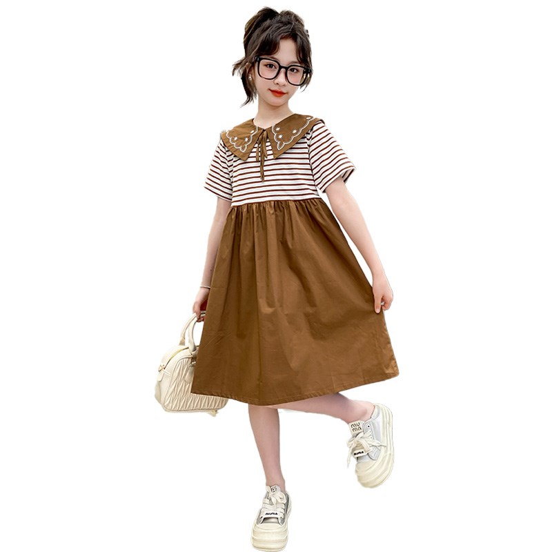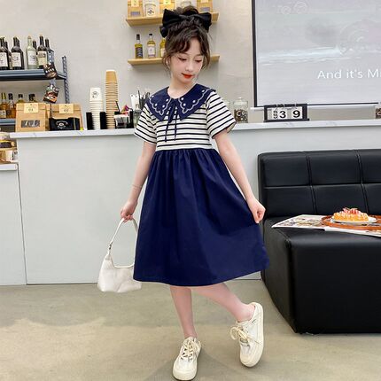 女童连衣裙夏季2024新款夏装女孩学院风纯棉海军领公主裙儿童裙子