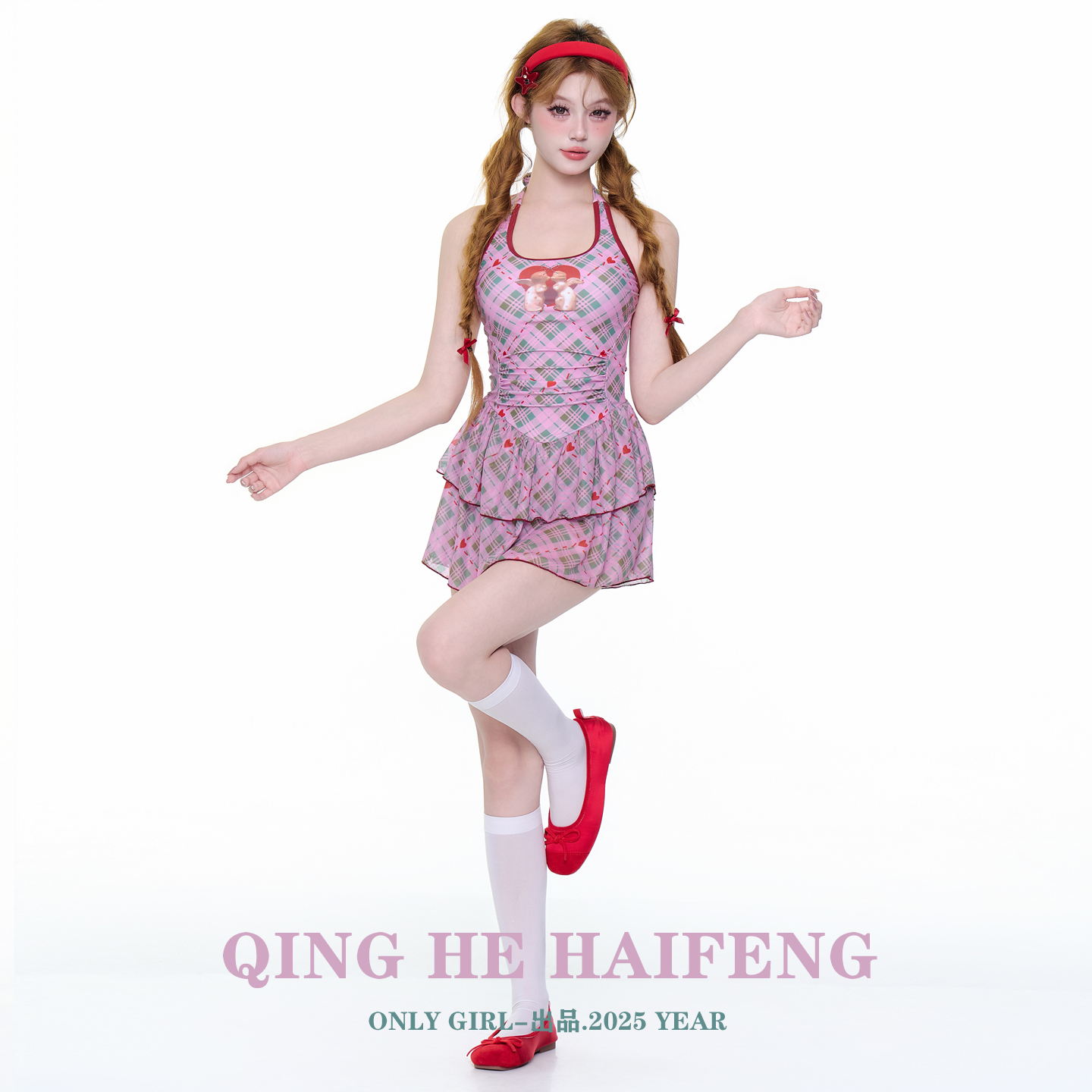ONLYGIRL泳衣女新款连体裙式保守遮肚显瘦小胸学生少女温泉度假