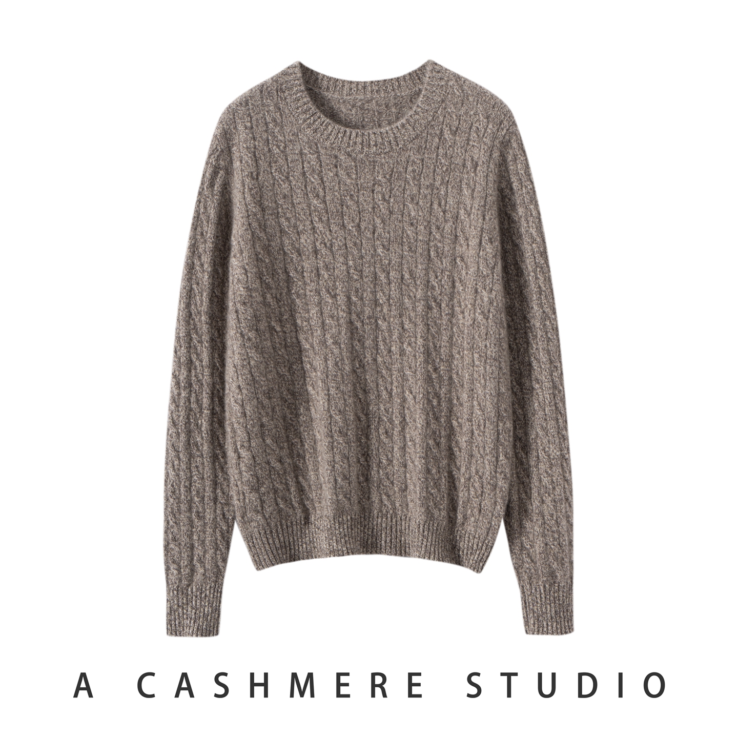 秋冬新款100%纯山羊绒衫女加厚圆领绞花针织衫宽松毛衣打底衫上衣