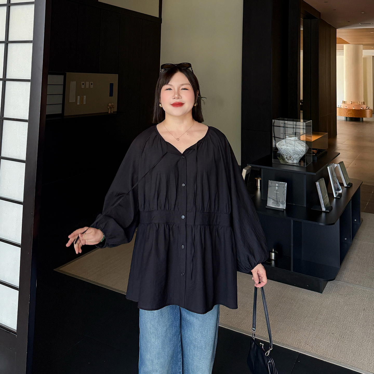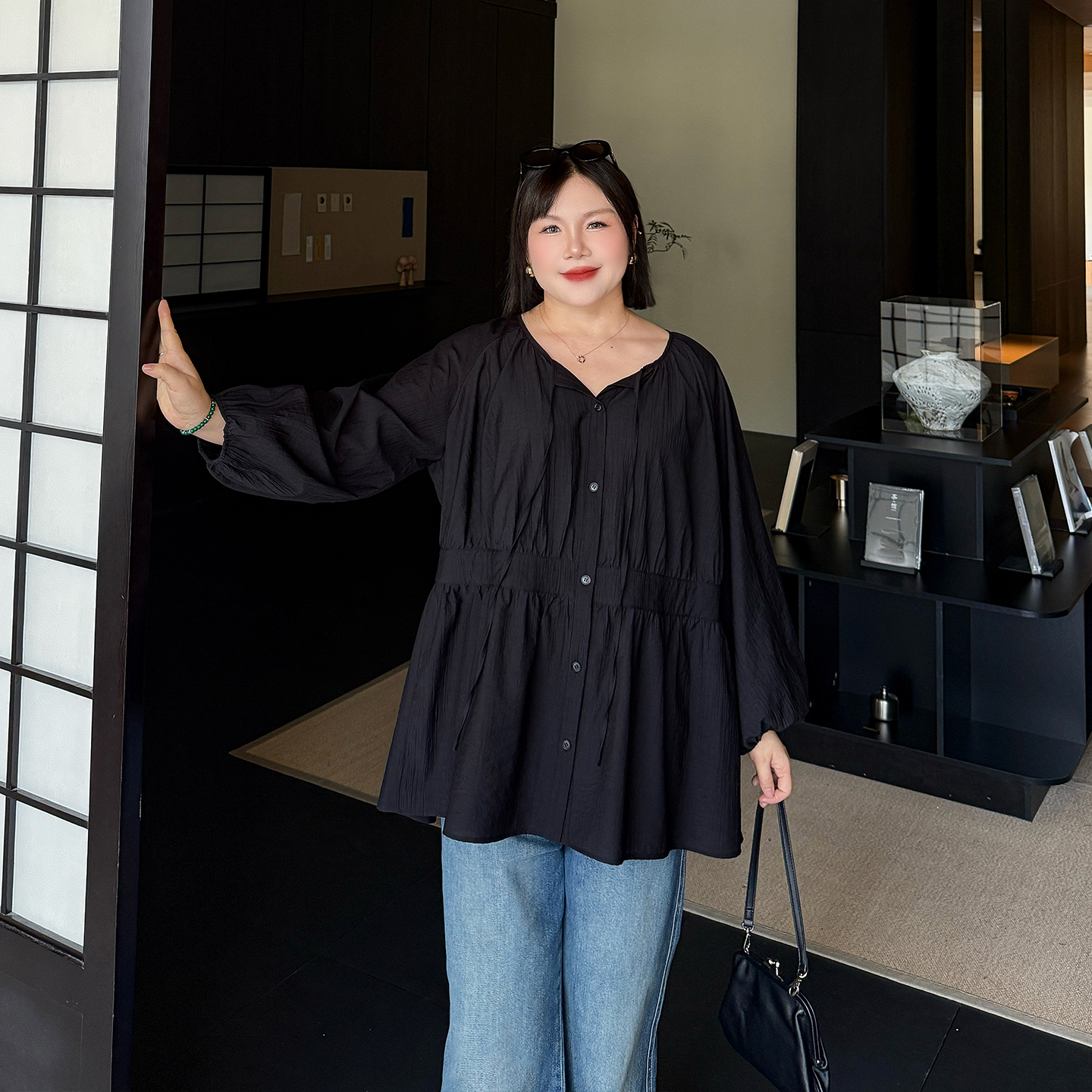 早秋薄款A字大码衬衫女2025新款200斤胖妹妹mm宽松显瘦泡泡袖上衣