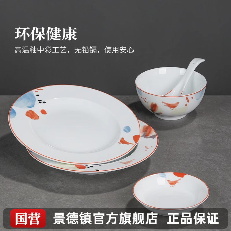 景德镇官方陶瓷无铅釉中饭碗盘汤碗家用中式高级餐具套装乔迁送礼