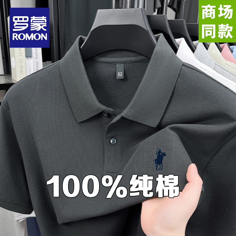 罗蒙100%纯棉Polo衫短袖T恤夏季新款体恤翻领休闲宽松透气半袖潮