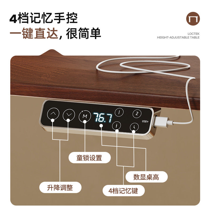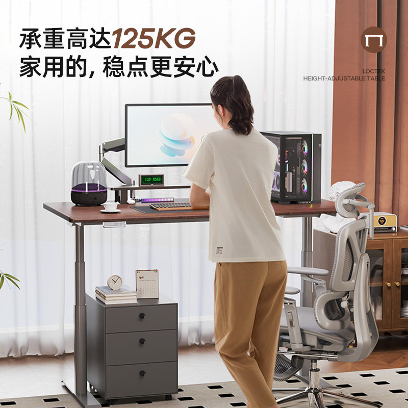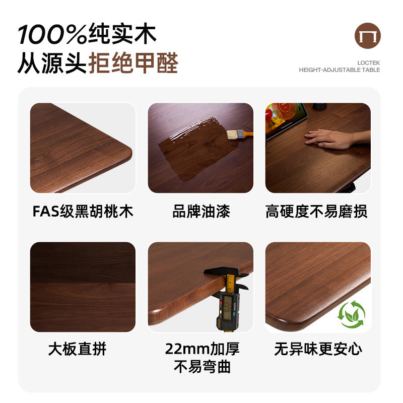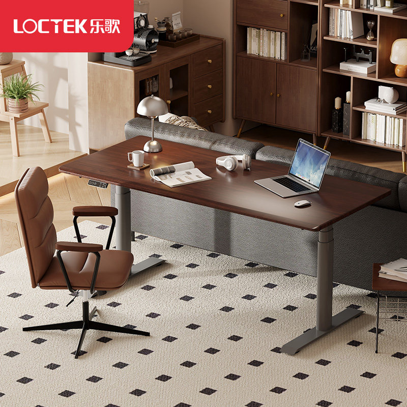 乐歌实木黑胡桃木电动升降桌办公桌电脑桌学习书桌双电机E5-N/E6