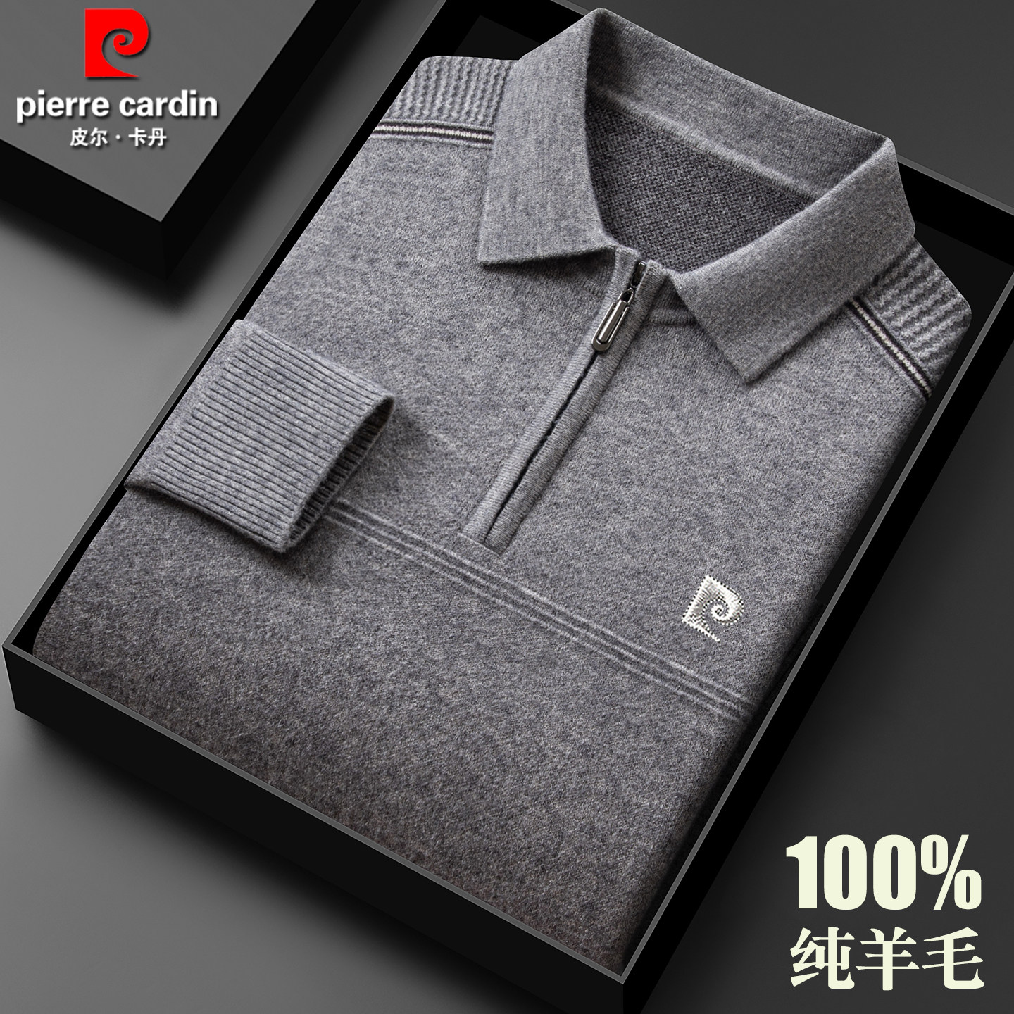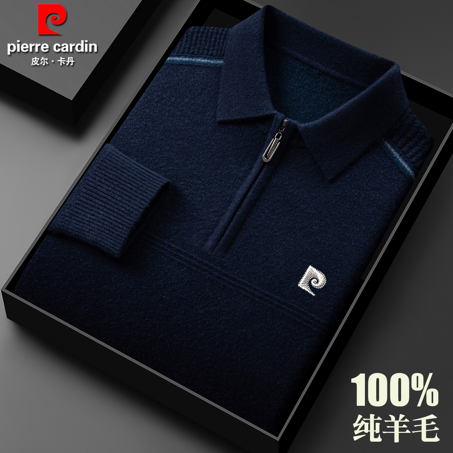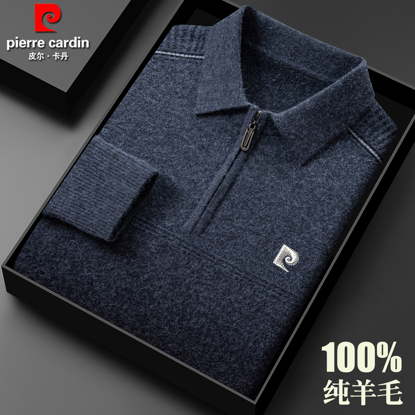 皮尔卡丹羊毛衫男秋冬季拉链翻领红色本命年毛衣加厚中年打底衫