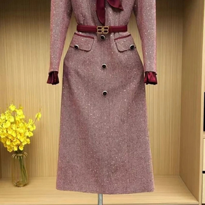 长袖小香风连衣裙女2025年秋冬新款粗花呢名媛高端中长款包臀裙子