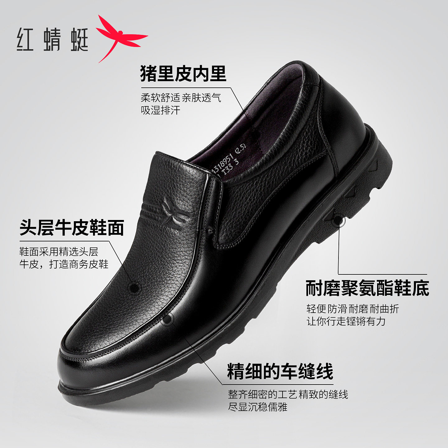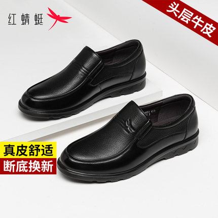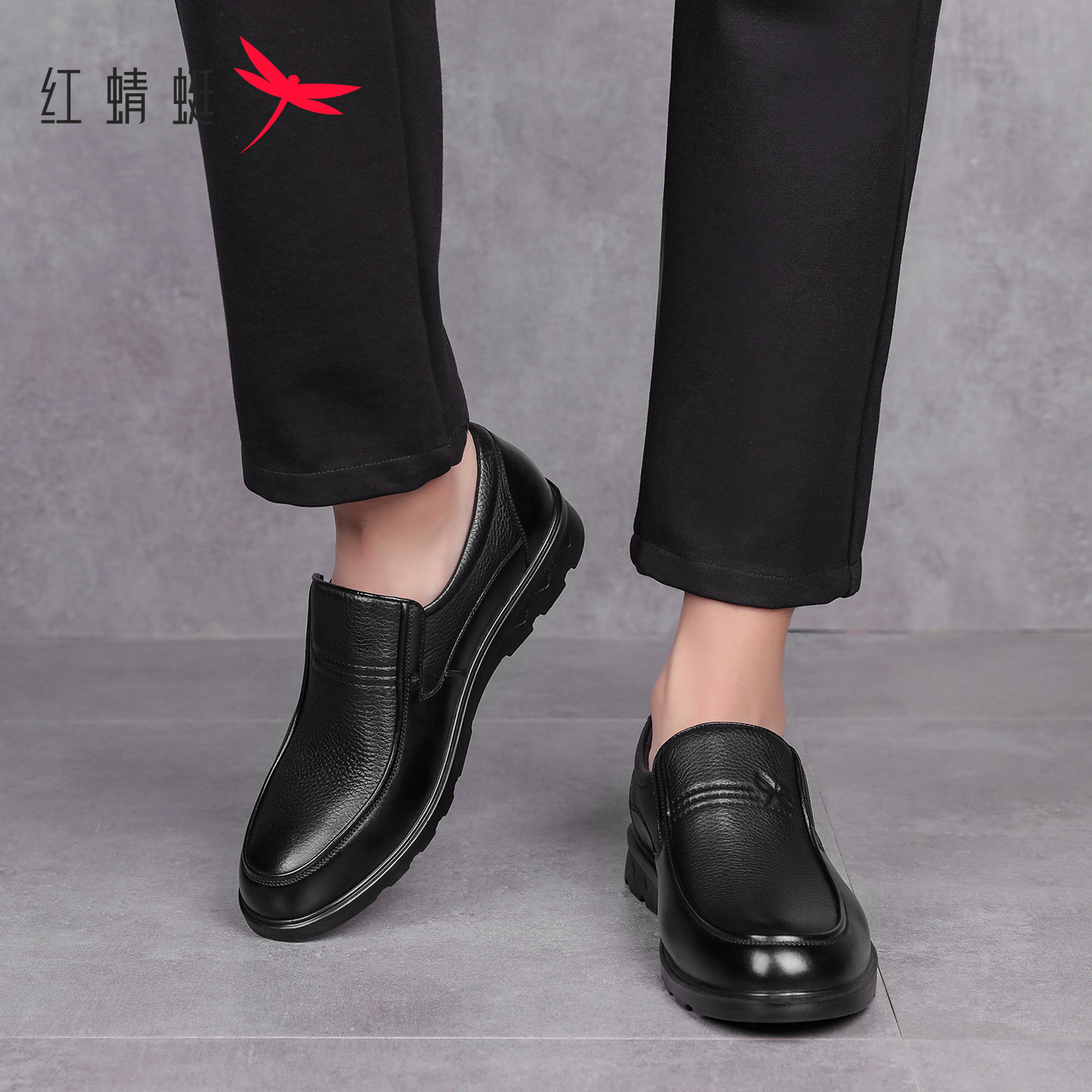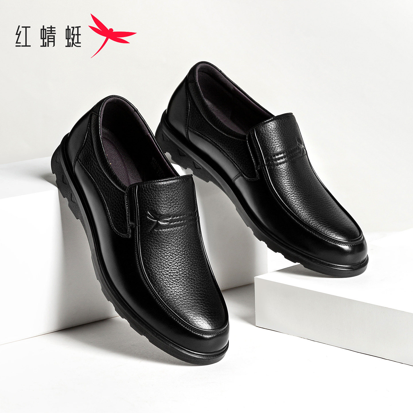红蜻蜓皮鞋男士休闲公商务一脚蹬真皮舒适软底新款中老年爸爸鞋子