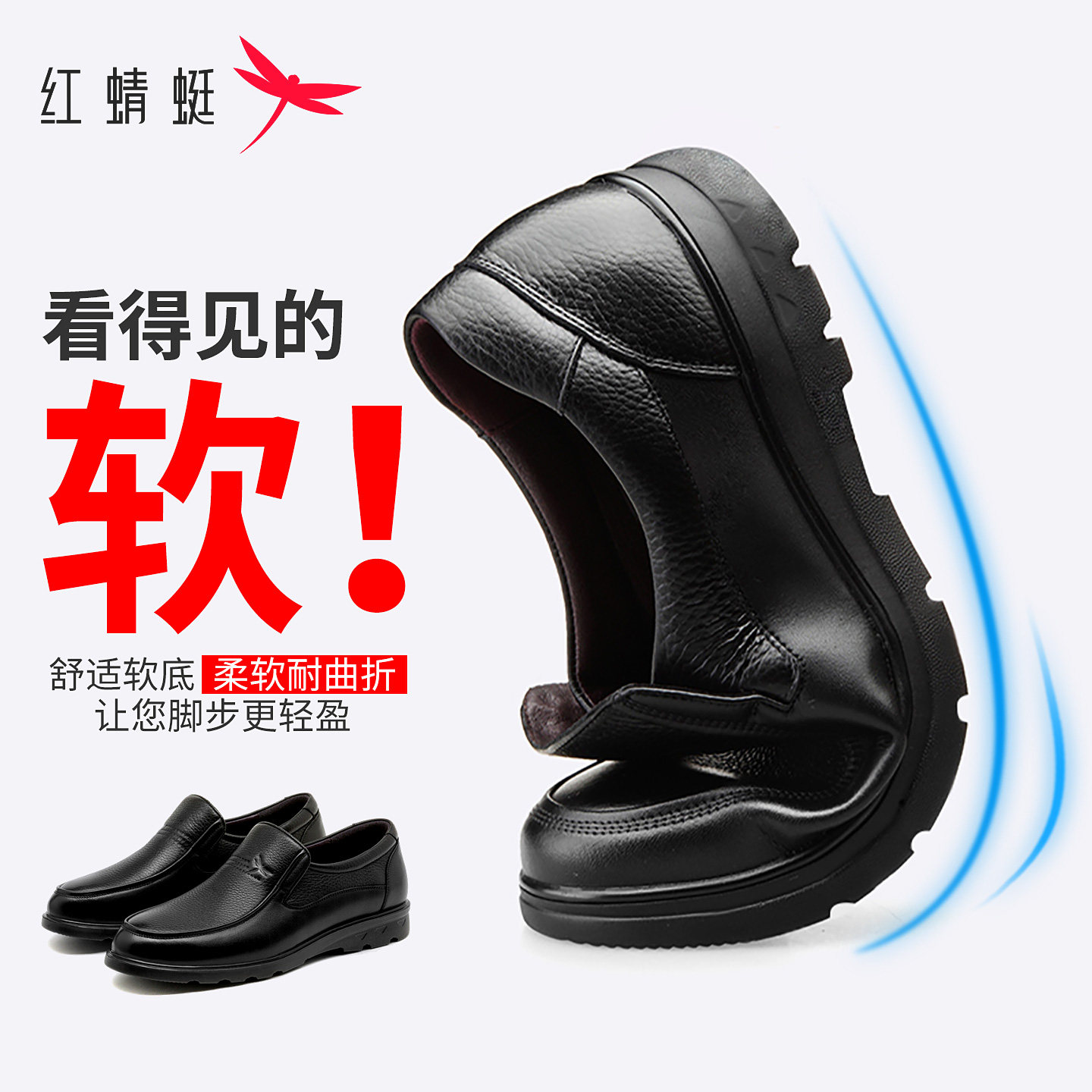 红蜻蜓春季款软底爸爸休闲皮鞋